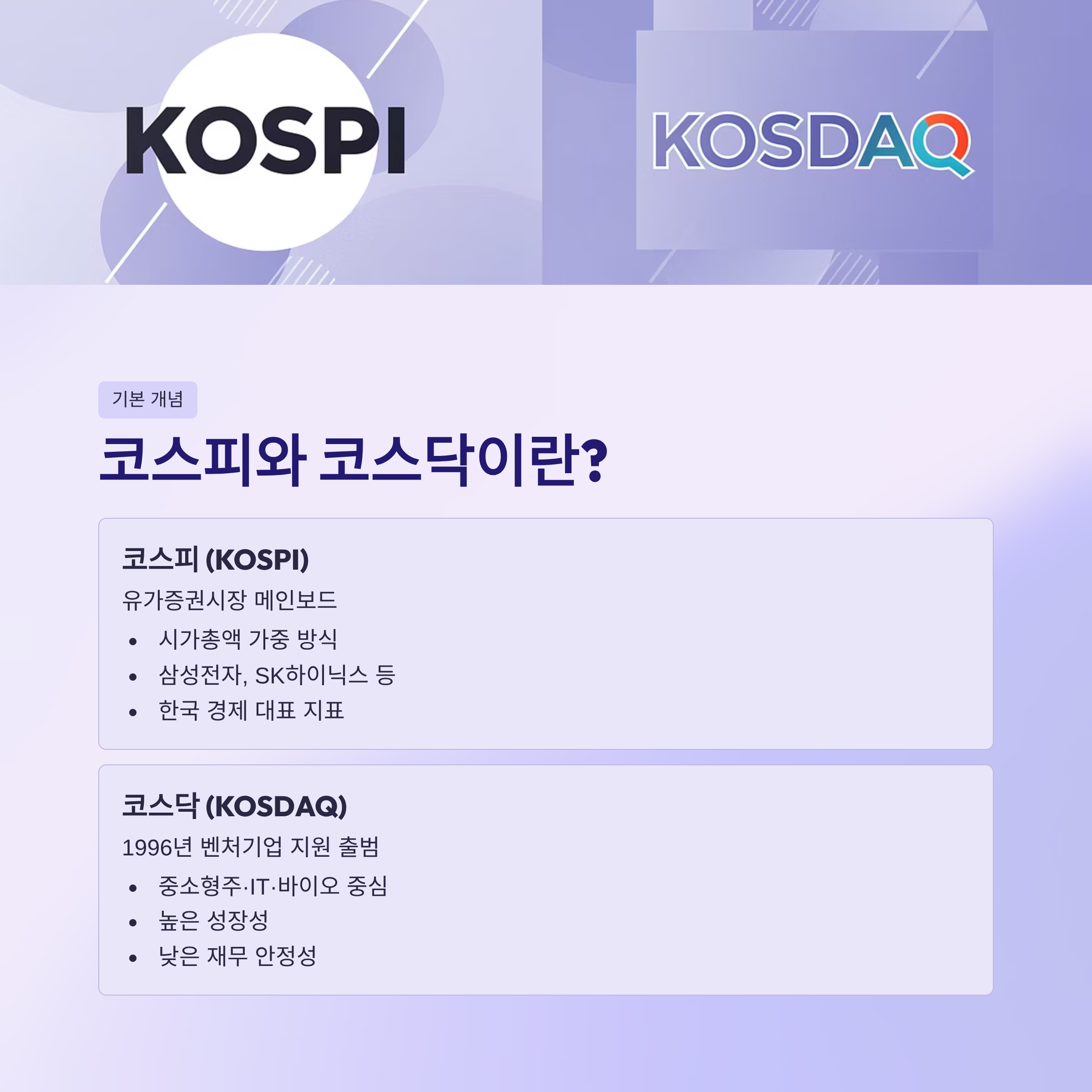 | 구분 | 코스피 | 코스닥 |