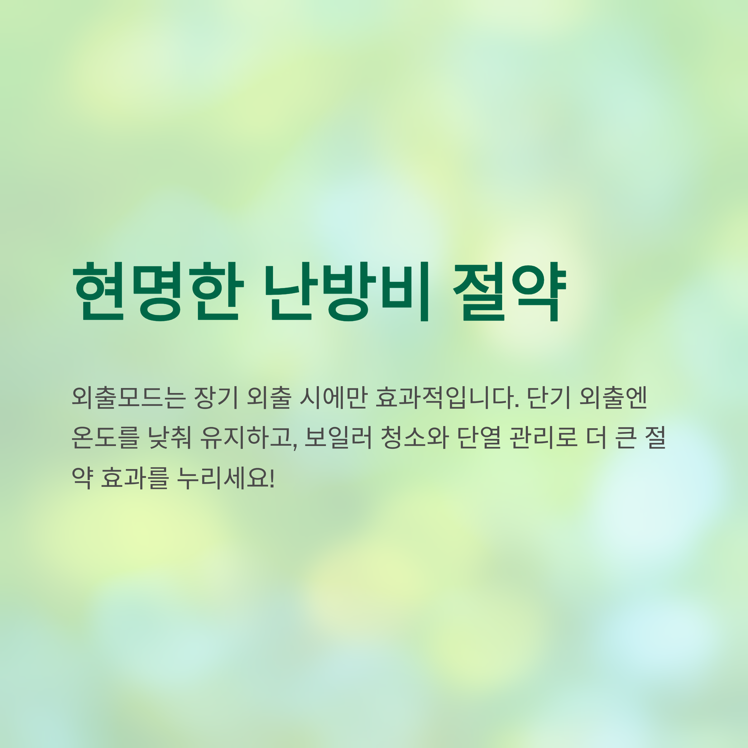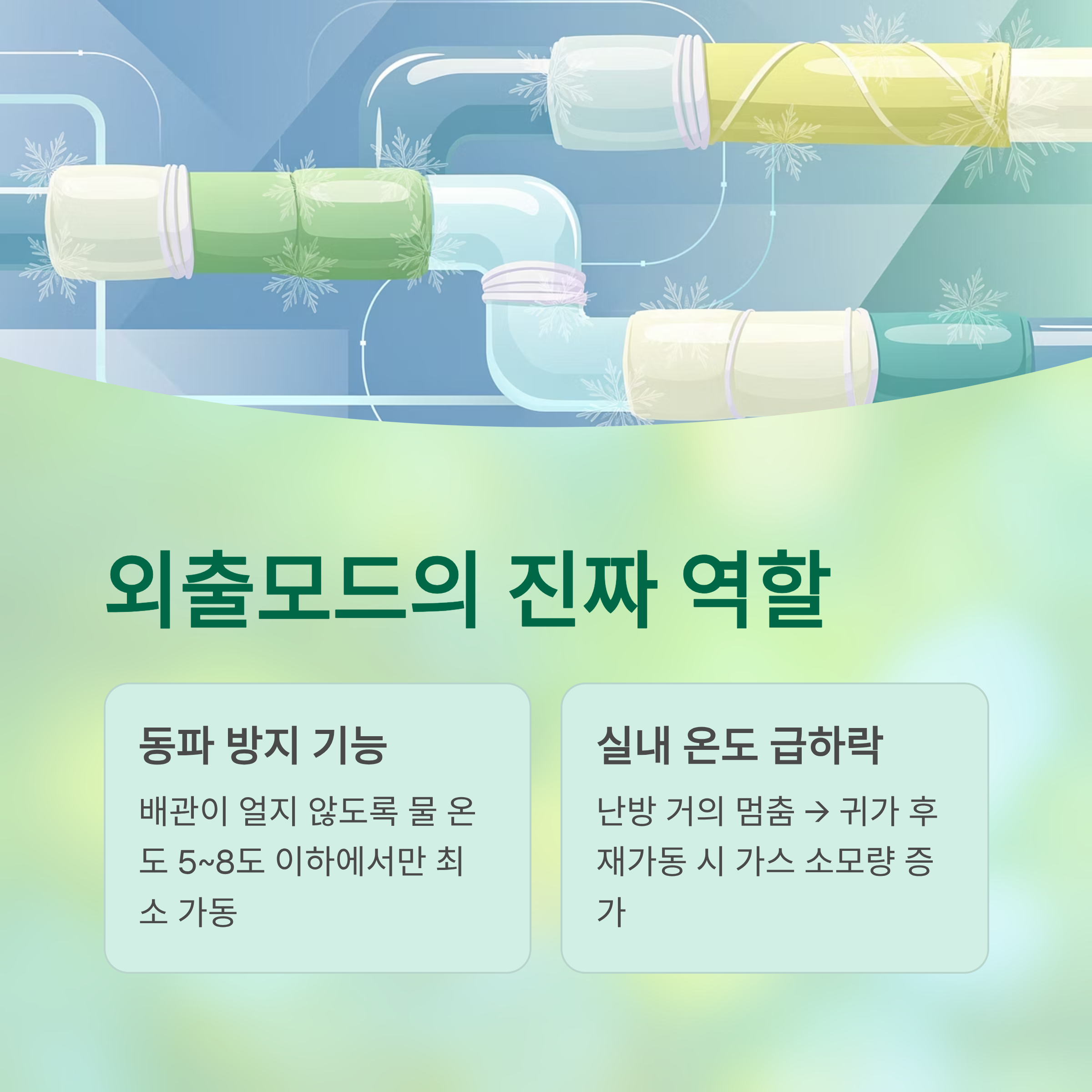 - 요약: “단열용, 동파 방지용 기능”이지, 단기 외출용 절약 기능은 아님