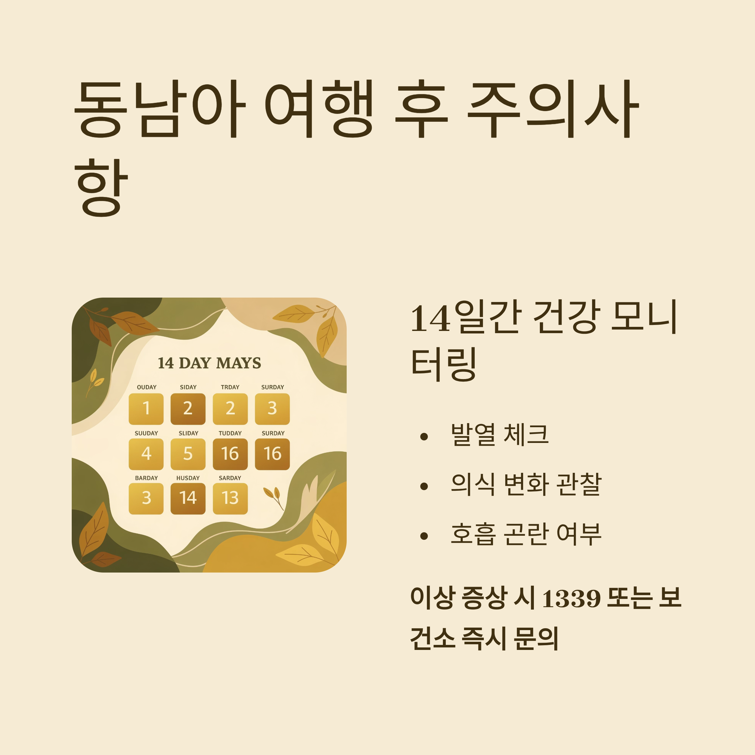 ✔ 여행 후 14일간 건강 모니터링