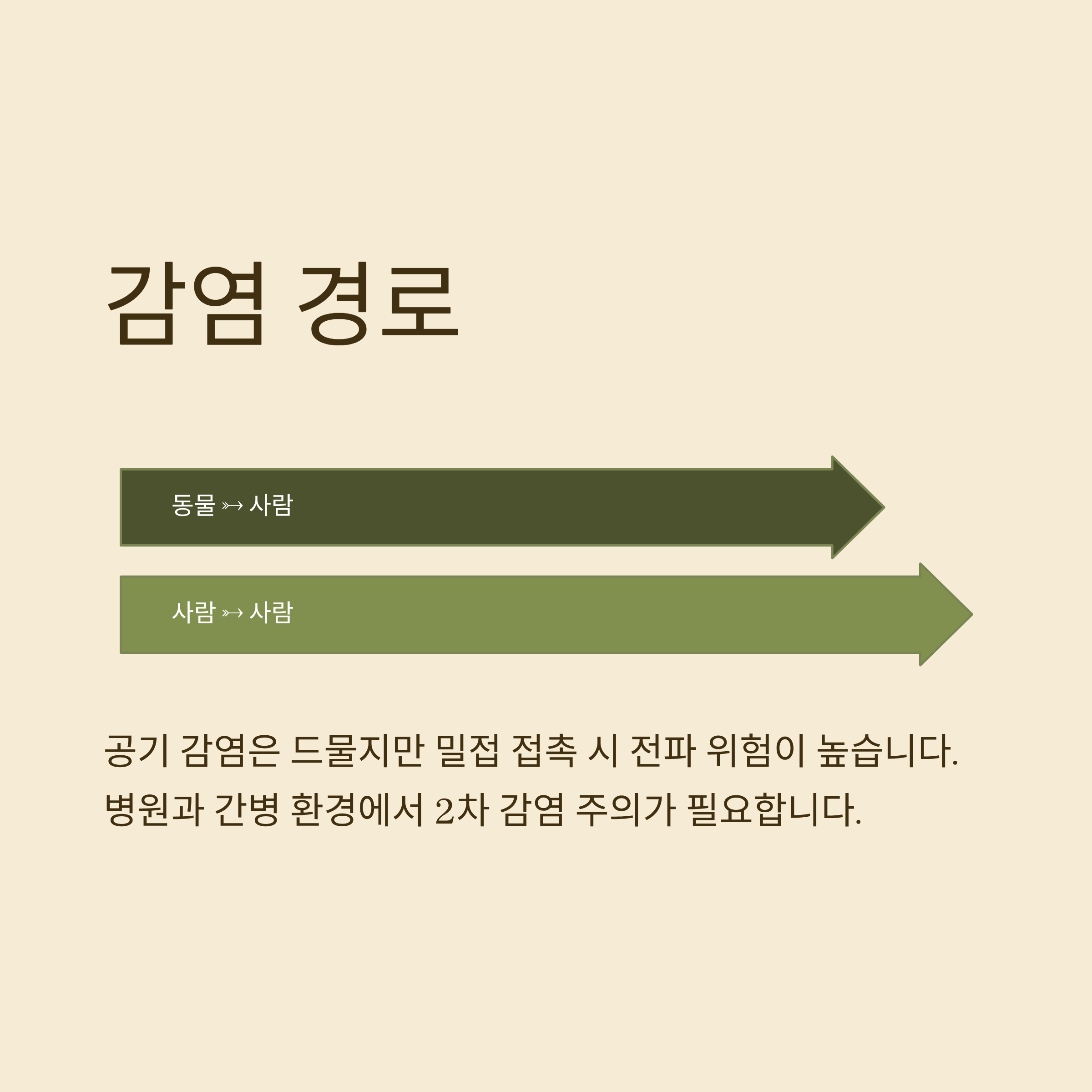 ※ 공기 감염은 드물지만, 밀접 접촉에 의한 감염 위험이 높습니다.