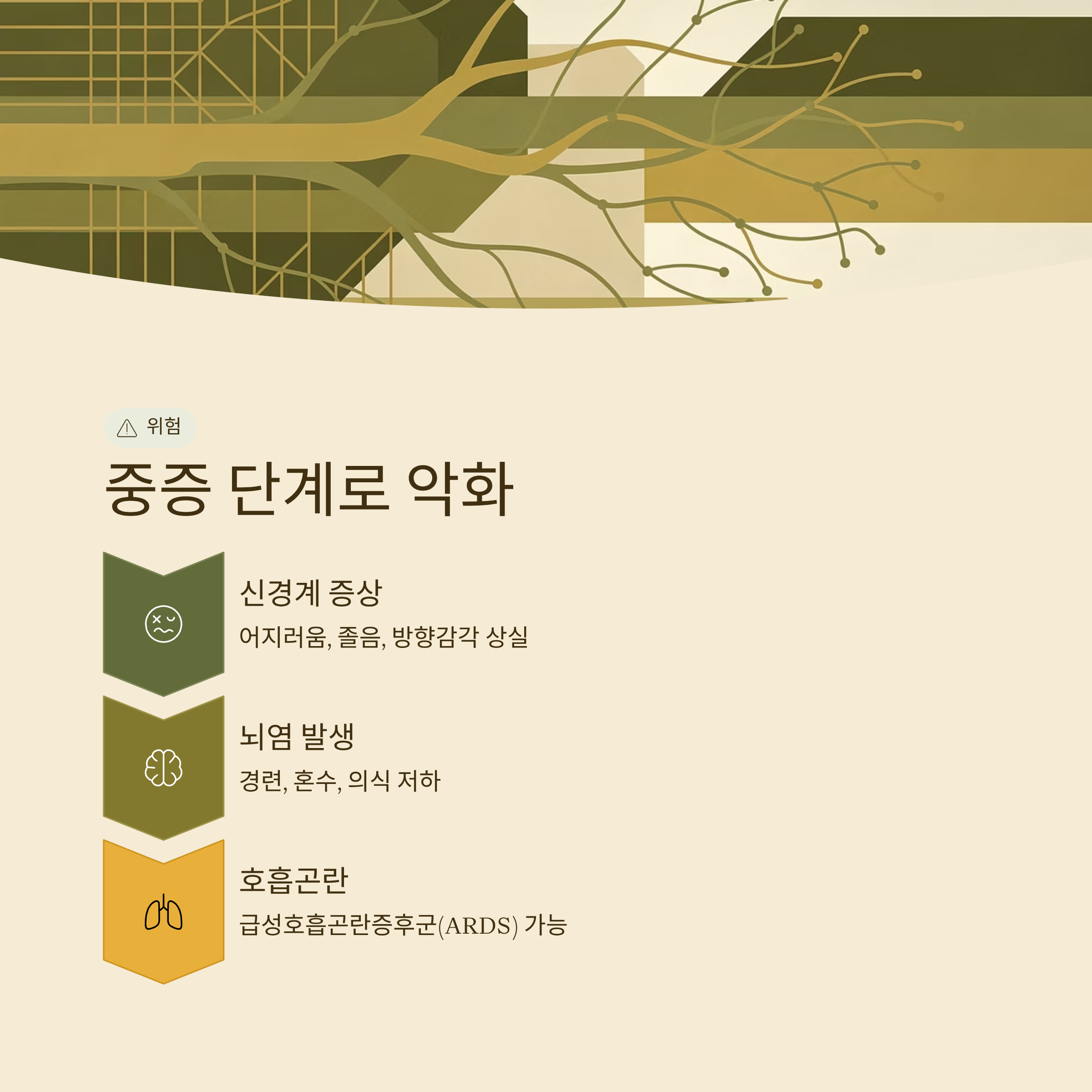 ● 중기 이후 증상 (신경계·호흡기 합병증)