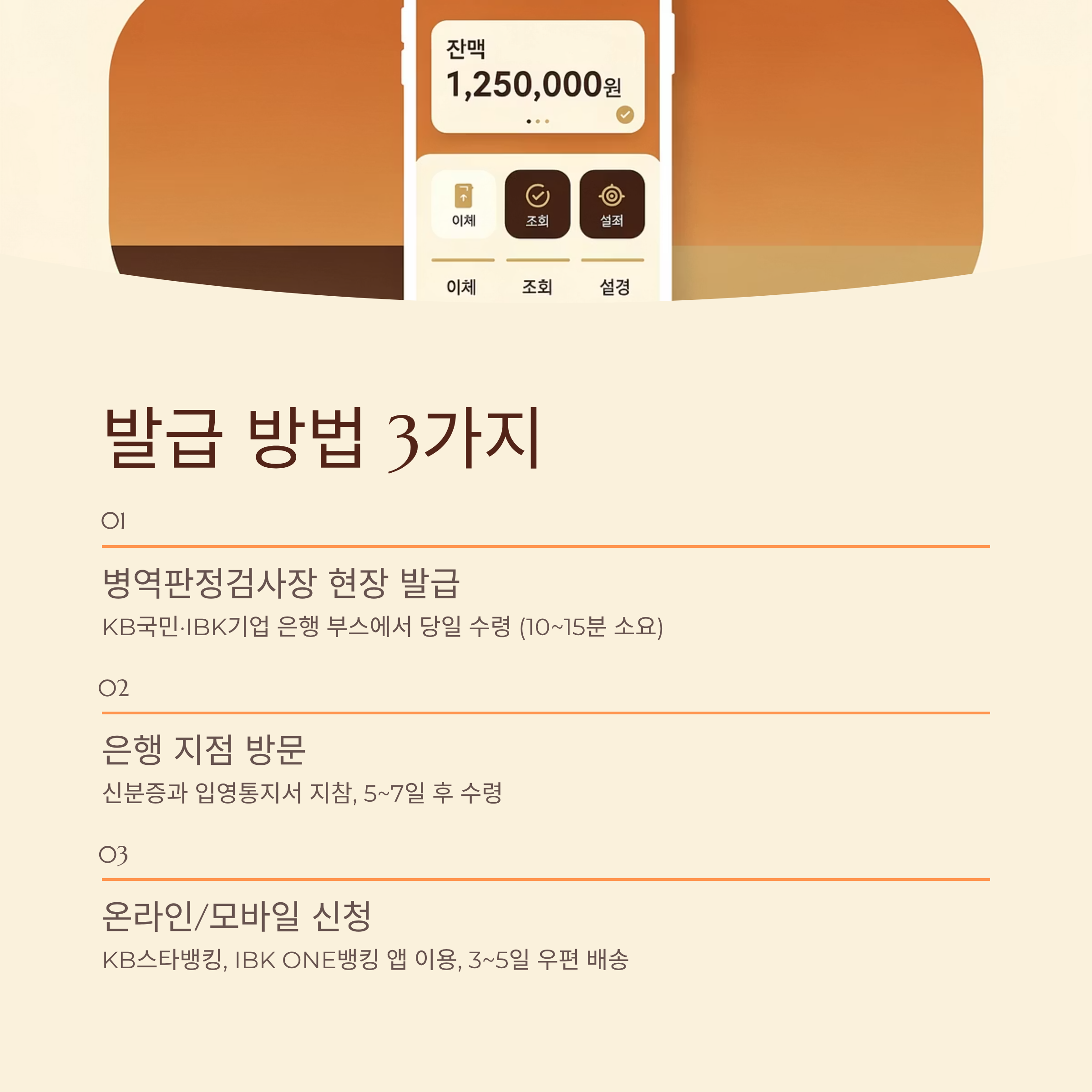 - 장소: 병무청 검사장 내 설치된 은행 부스(KB국민·IBK기업)