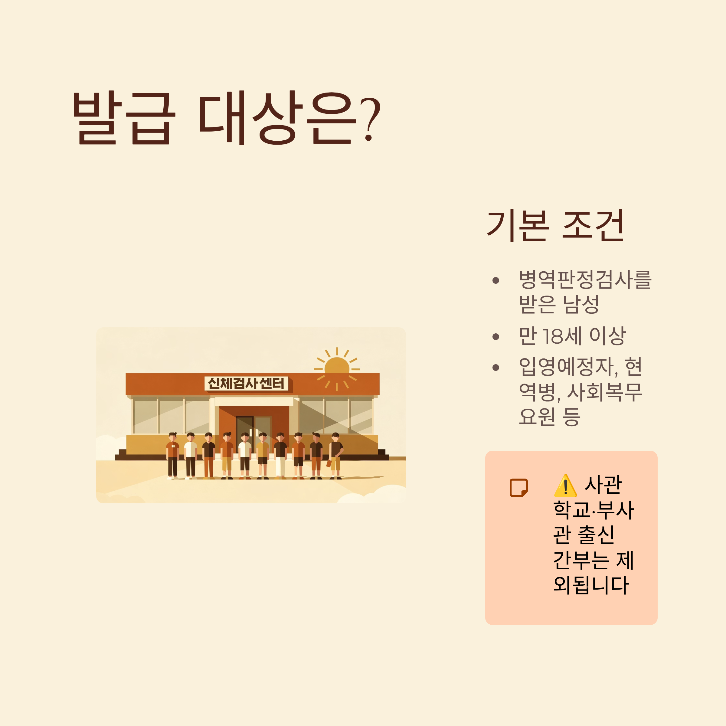 - 제외 대상: 병역판정검사 없이 임관한 간부 (사관학교, 부사관 등)