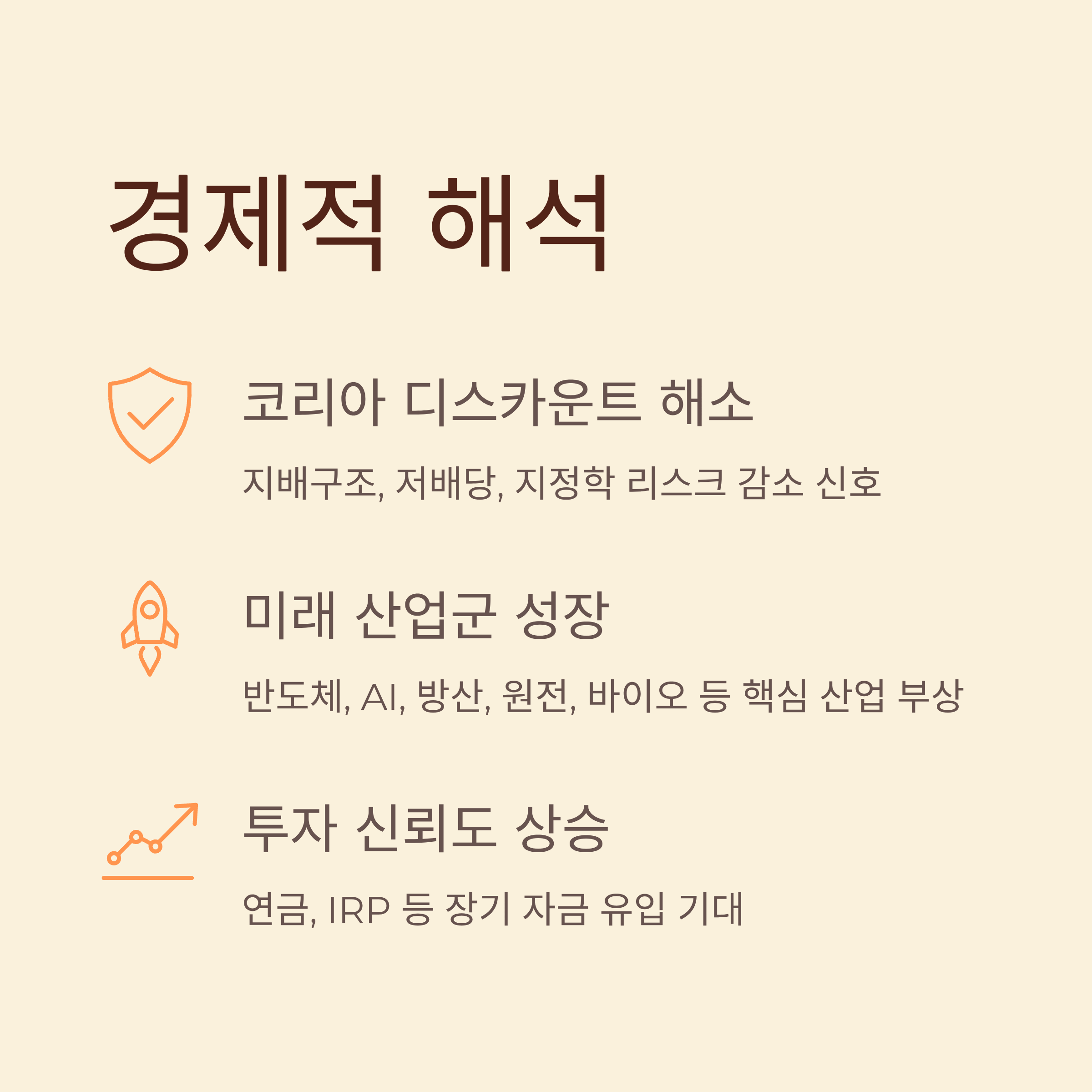 - 미래 산업군 성장: 반도체, AI, 방산, 원전, 바이오 등