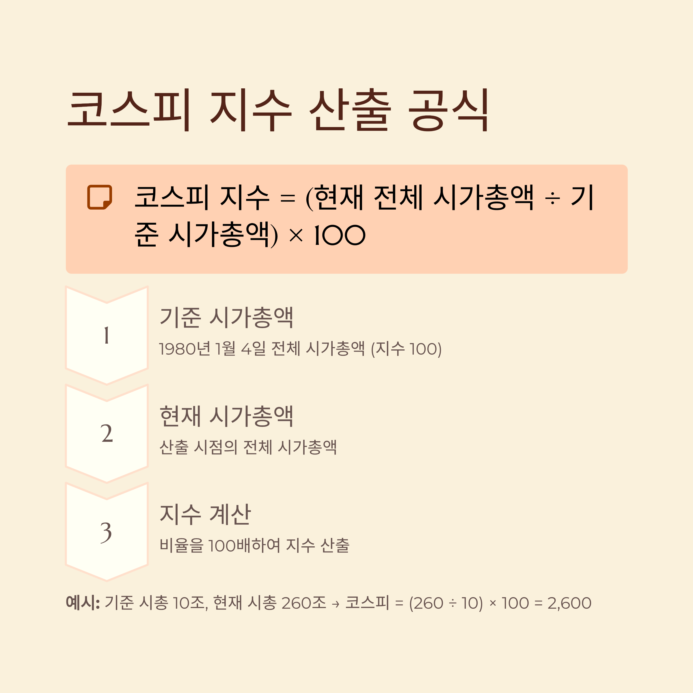 → 코스피 = (260 ÷ 10) × 100 = 2,600