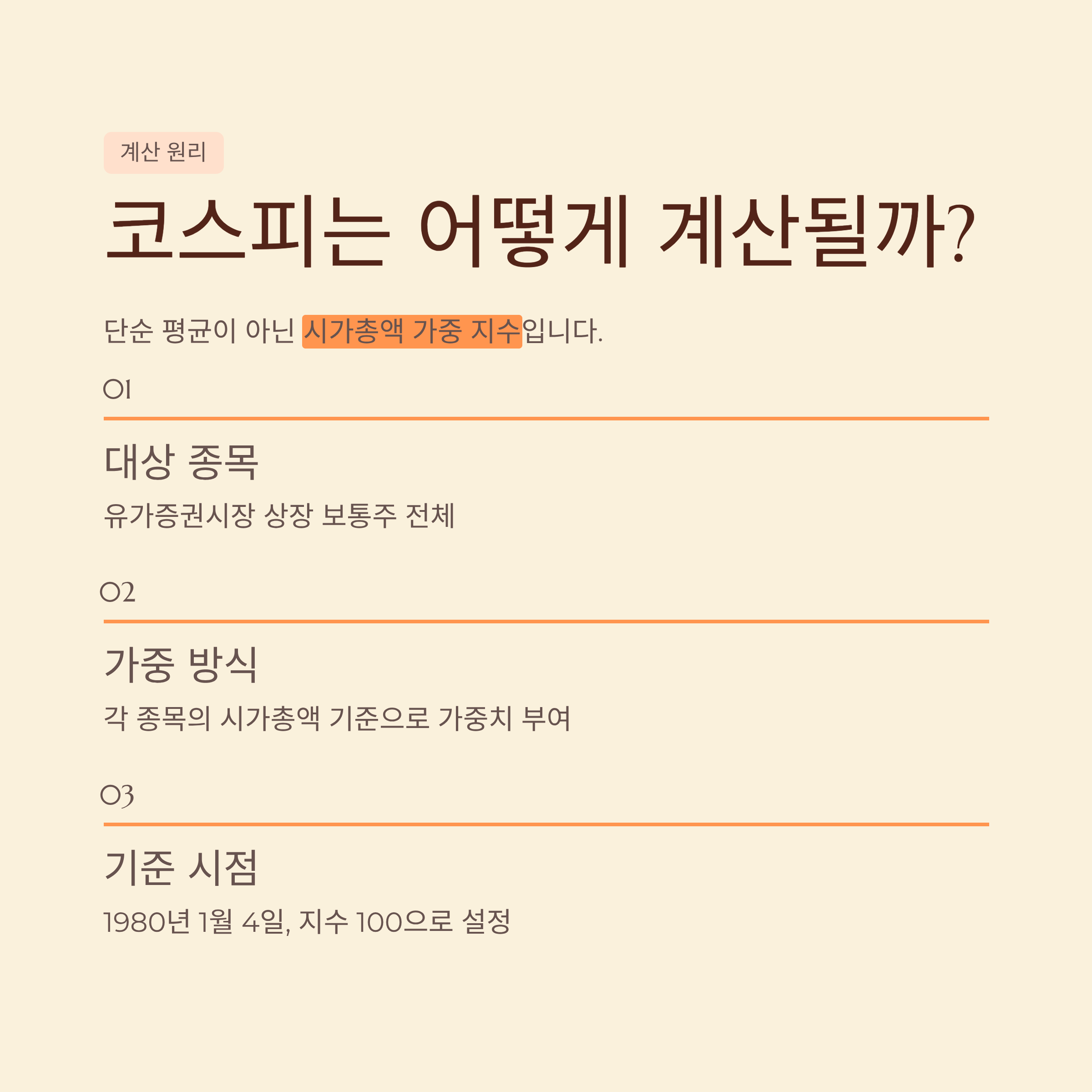 코스피는 단순 평균이 아닌 시가총액 가중 지수입니다.