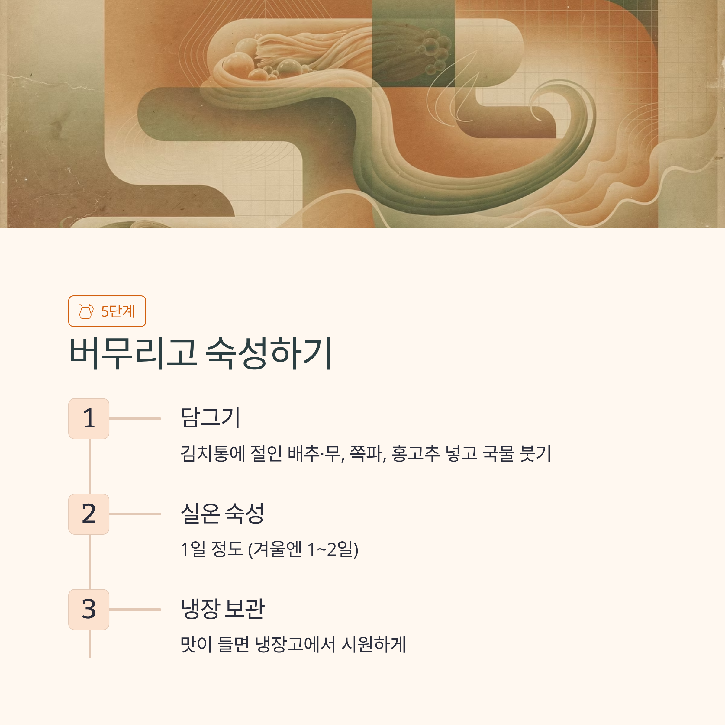 - 맛이 들기 시작하면 국물이 살짝 톡 쏘고 시원한 풍미가 올라옵니다.