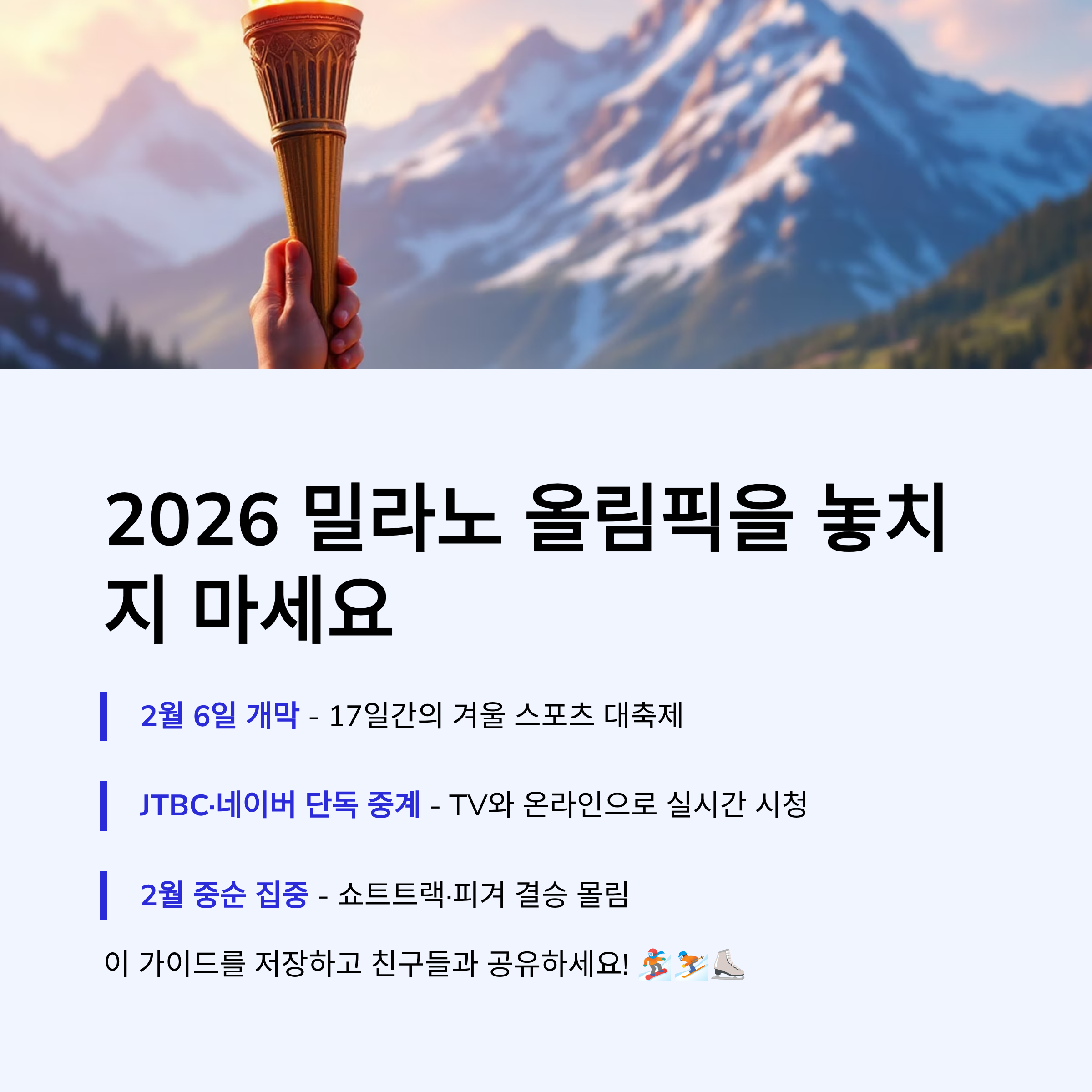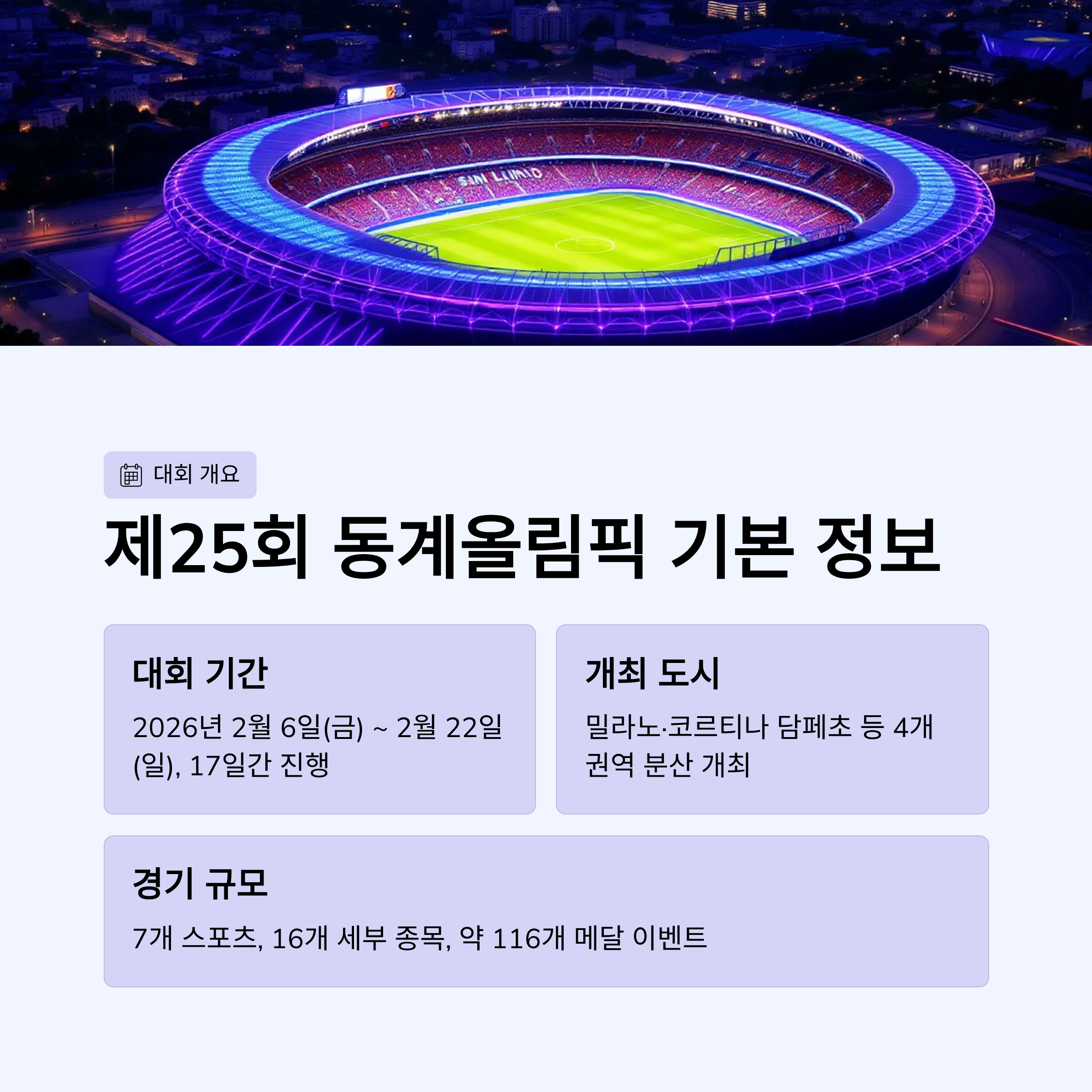 - 대회명: 제25회 동계올림픽 (Milano Cortina 2026)