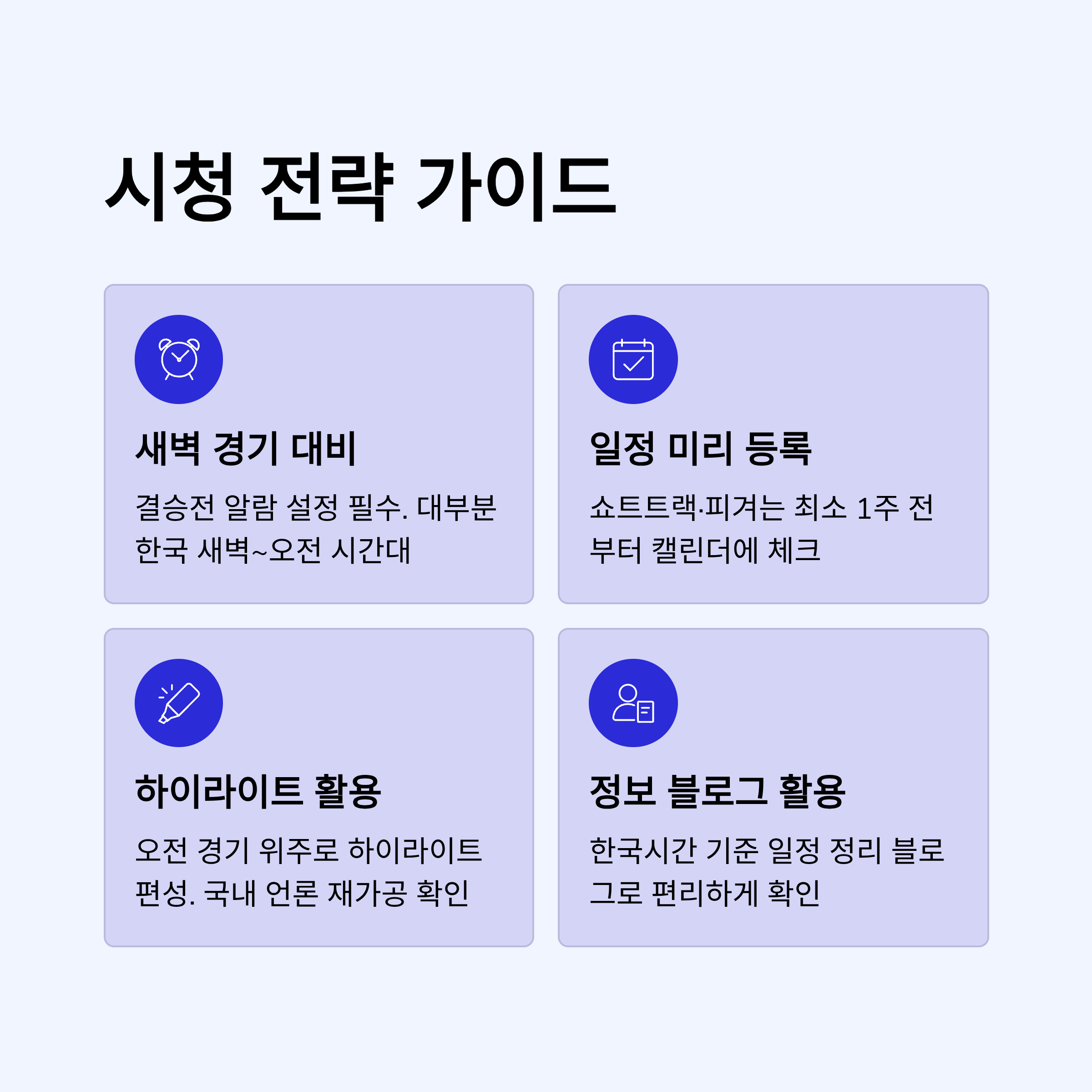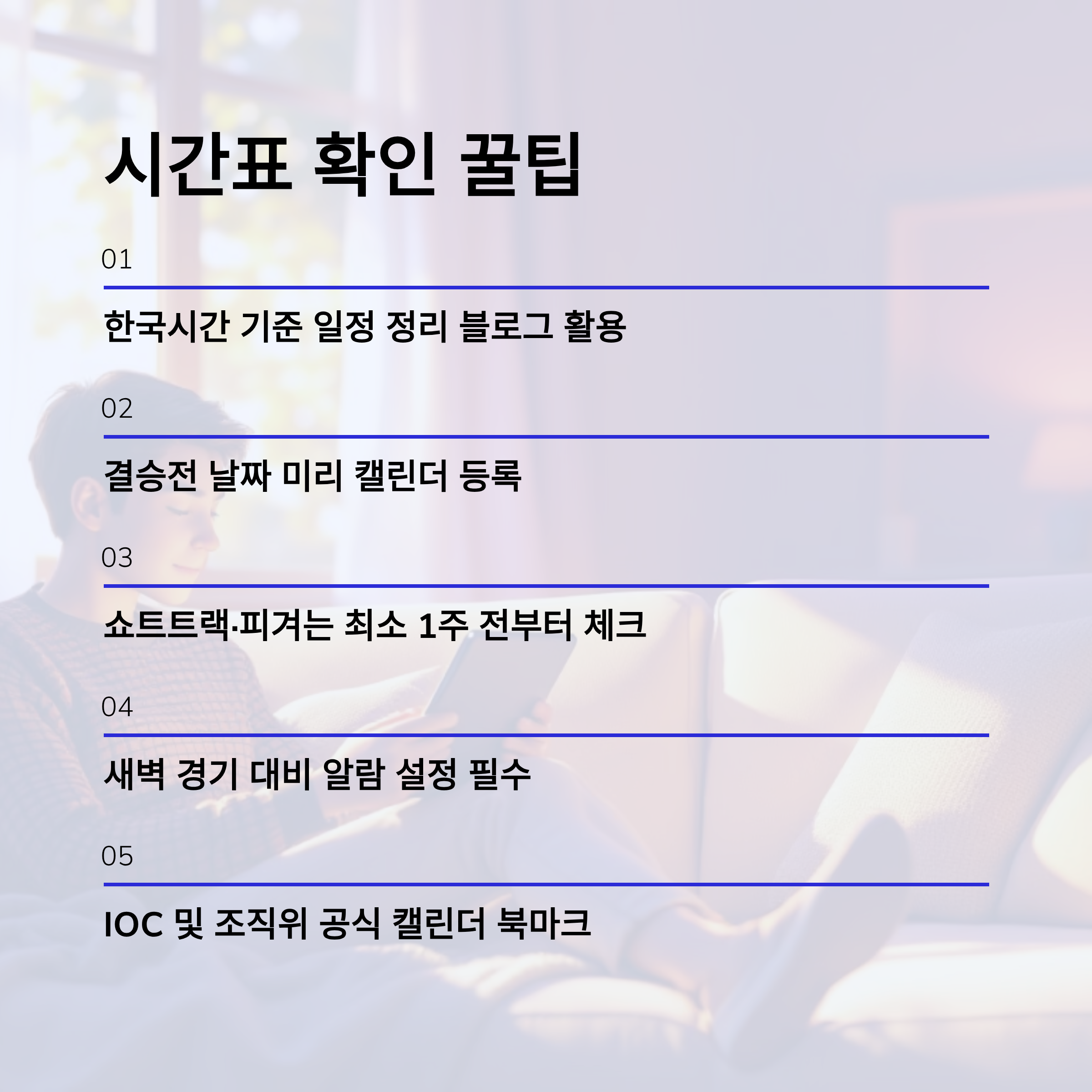 - 새벽 경기 대비 알람 설정 필수