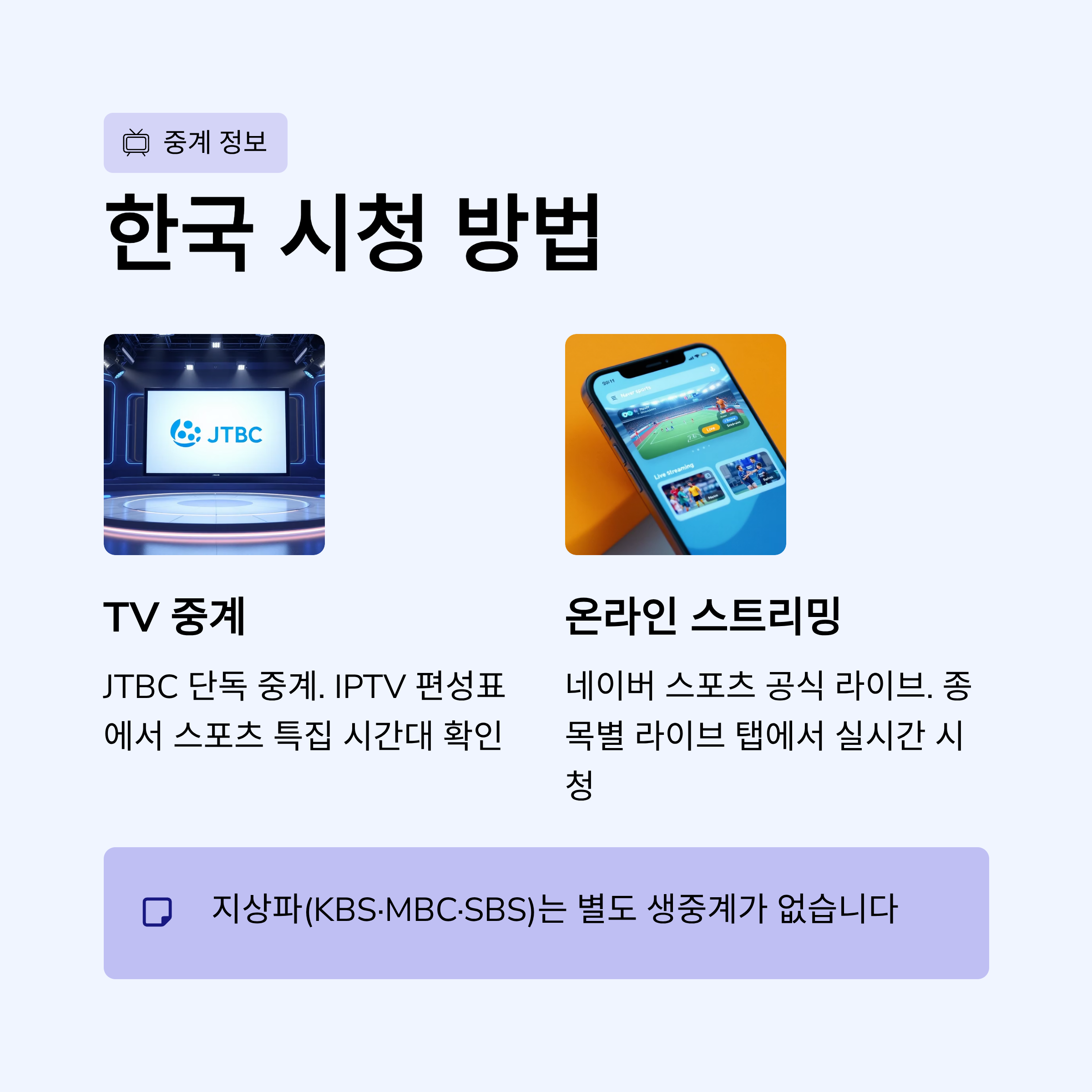 한국 중계 정보 (JTBC·네이버 단독)