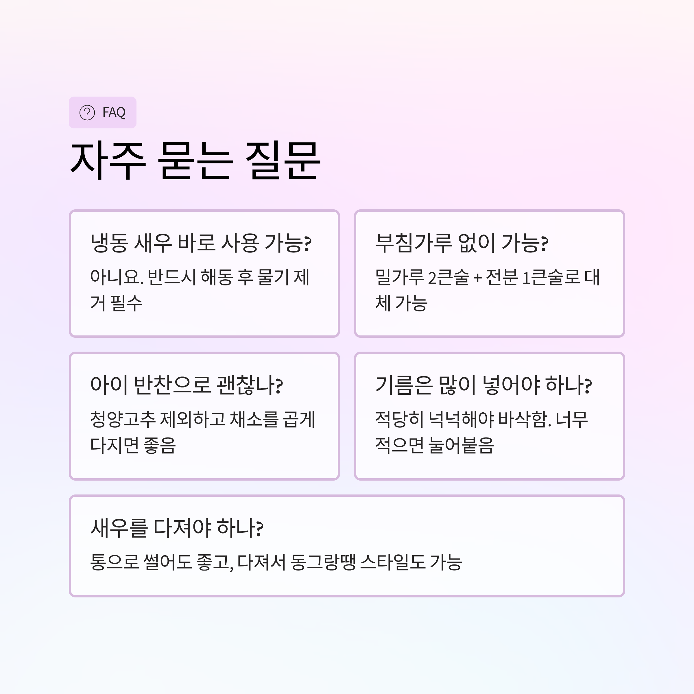 냉동 새우전 자주 묻는 질문 FAQ