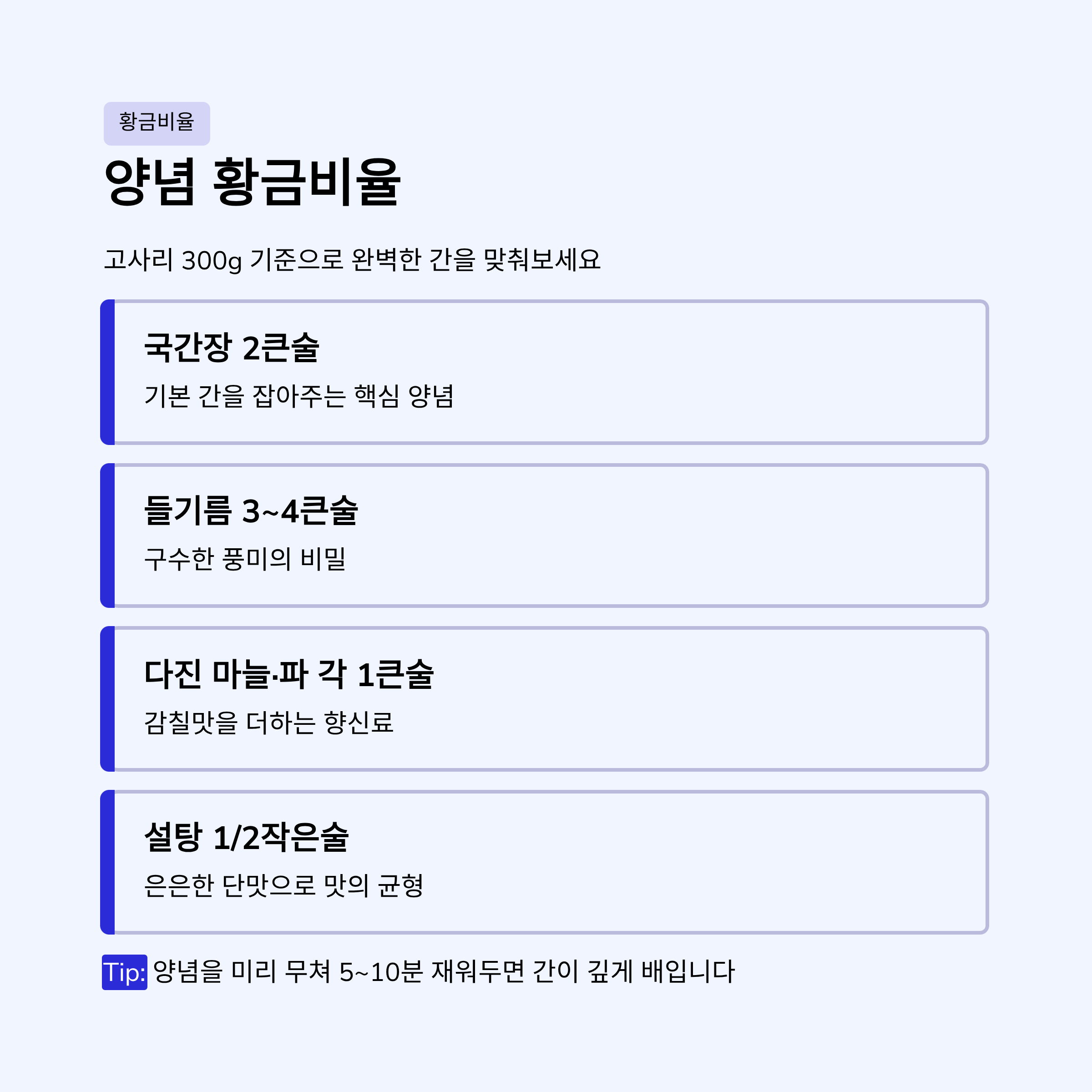 감칠맛을 더하려면 멸치가루나 멸치육수 100ml를 추가하세요.