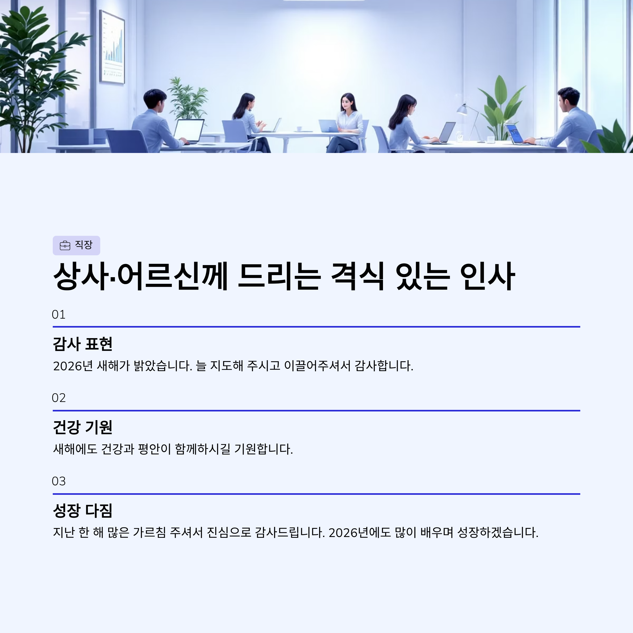 - 새해 복 많이 받으십시오. 2026년에도 좋은 인연으로 함께 성장해 나가길 바라며, 변함없는 협력 부탁드립니다.