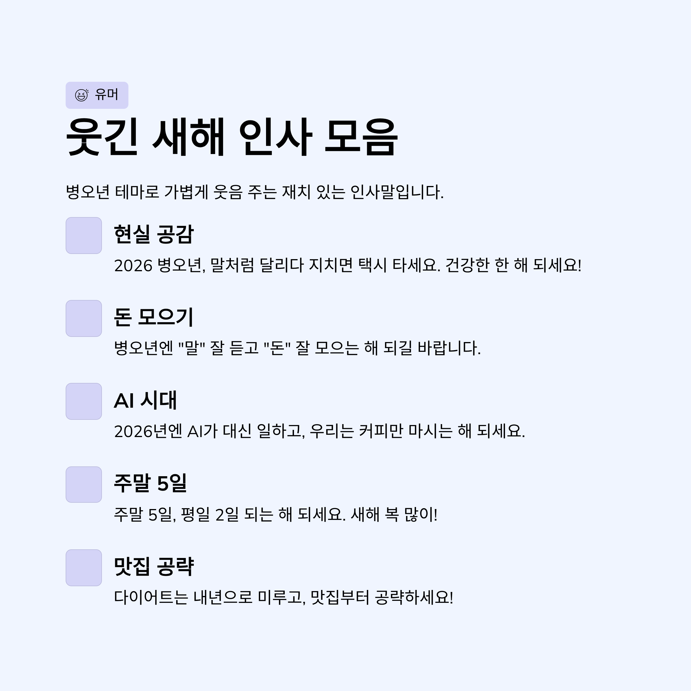 병오년 테마로 말장난·현실 공감 넣어 가볍게 웃음 주는 문구입니다.