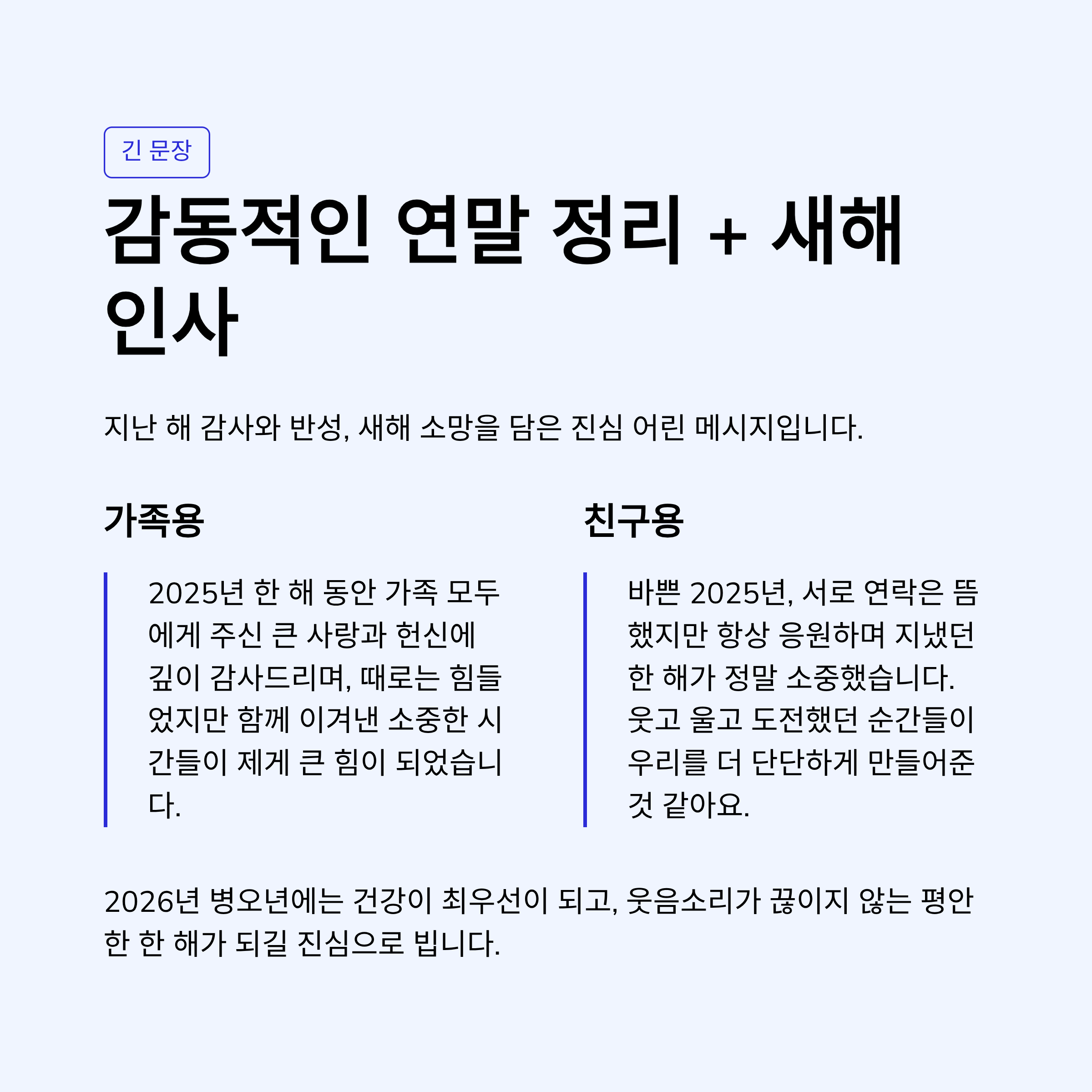 연말 정리 + 새해 인사 (긴 문장)