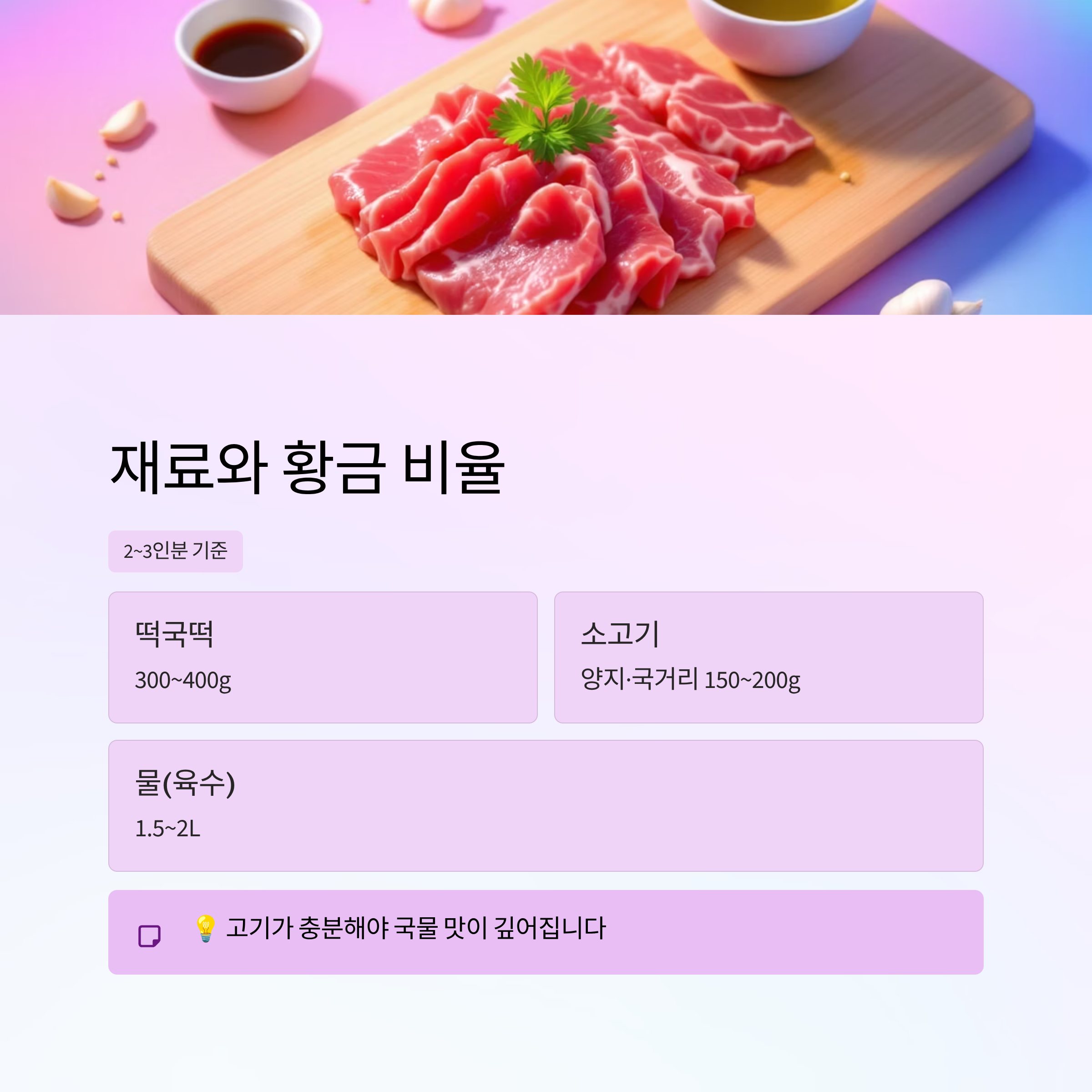 1. 소고기 떡국 재료와 황금 비율