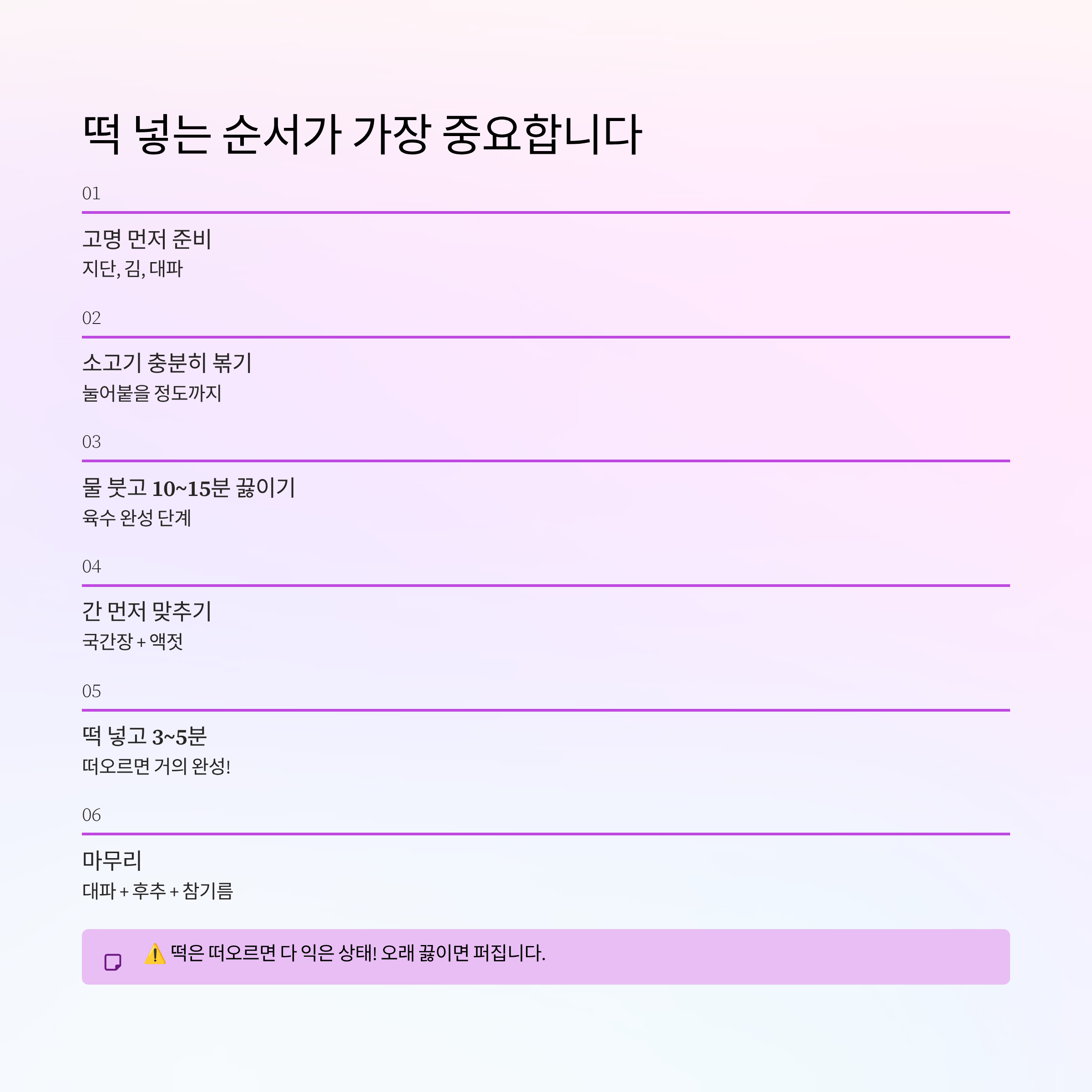 4. 떡 넣는 순서가 가장 중요합니다