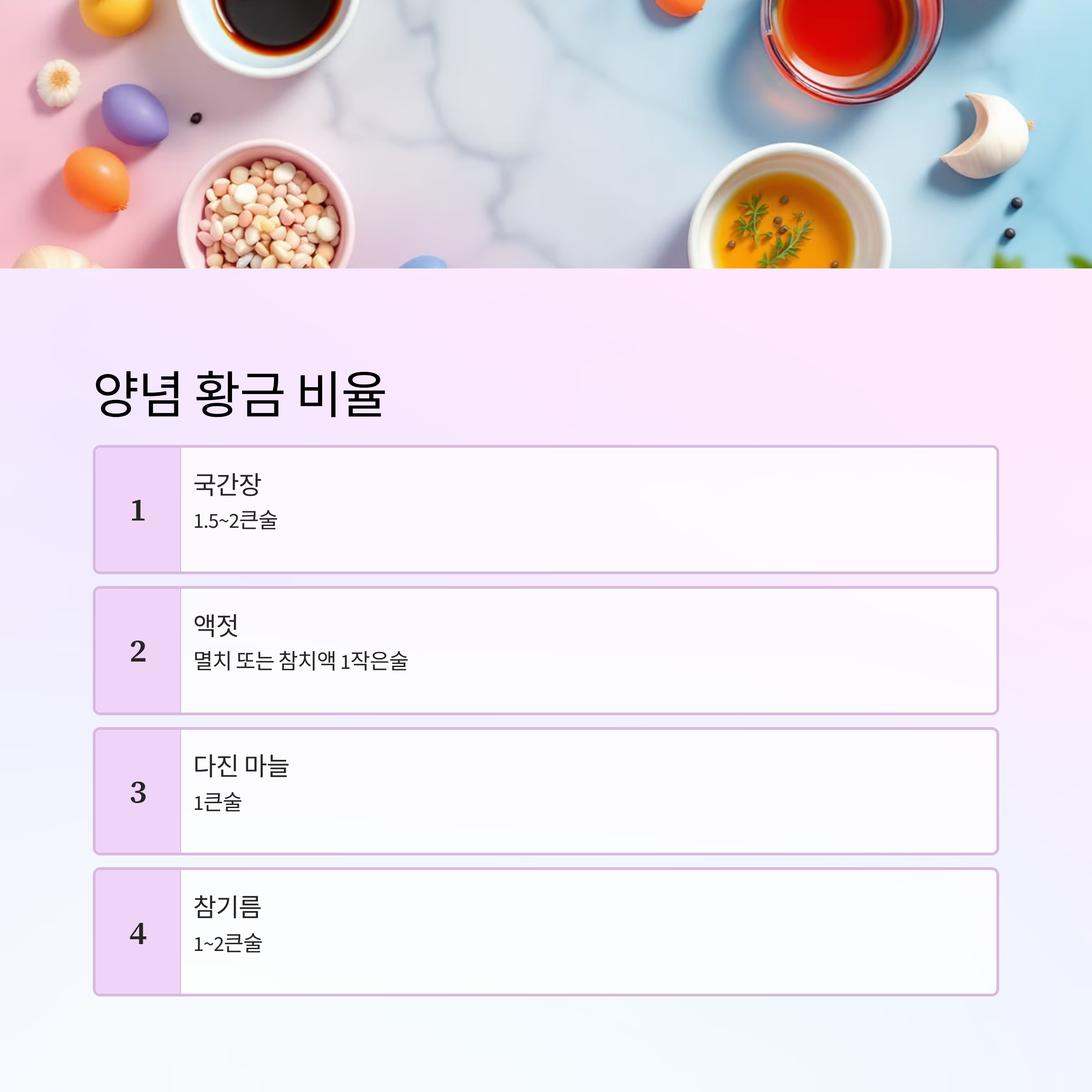 - 멸치액젓 또는 참치액 1작은술
