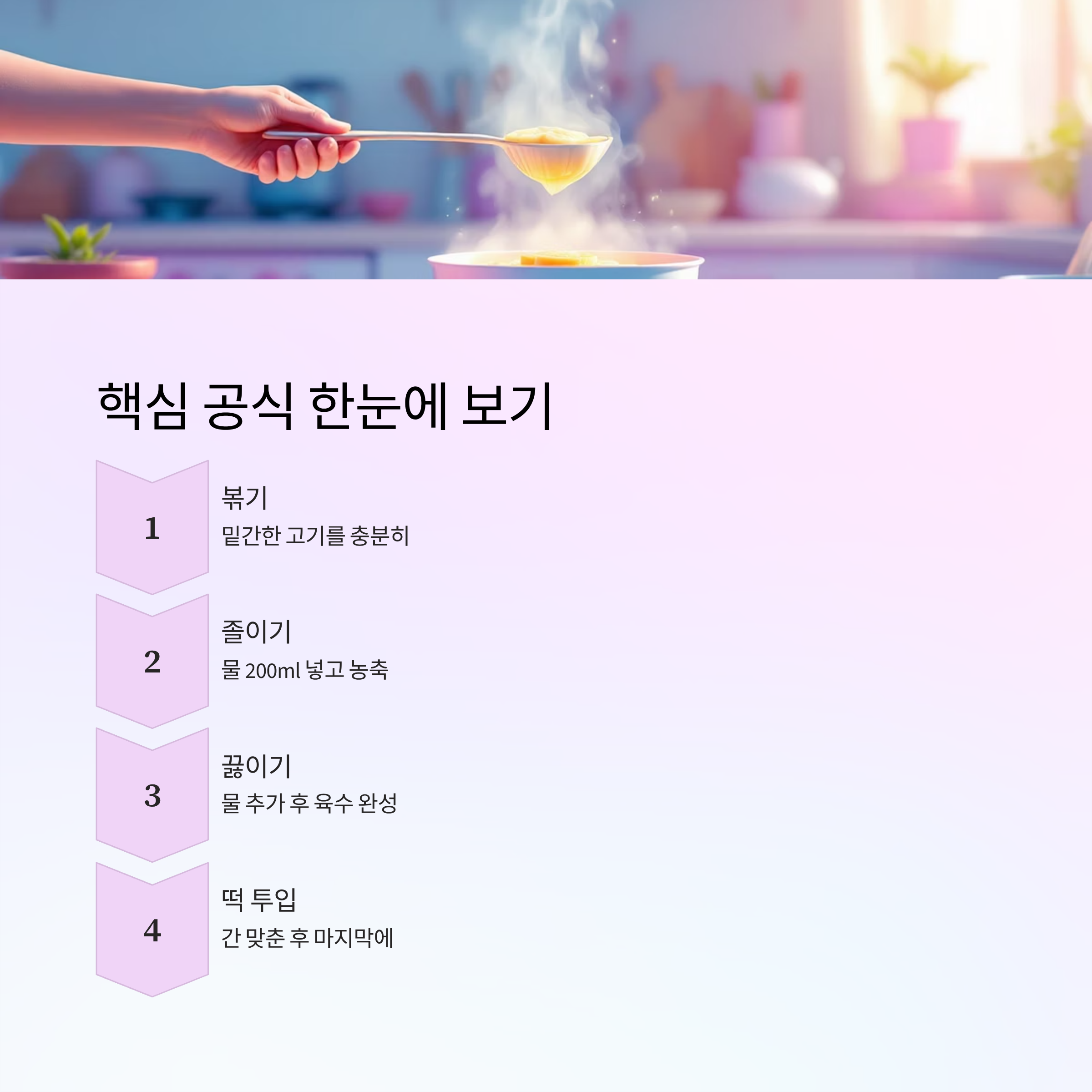 소고기 떡국 맛있게 끓이는 법의 핵심은 고기를 충분히 볶고 한 번 졸이는 과정입니다. 같은 재료라도 순서 하나만 바꿔도 국물 맛이 완전히 달라집니다.