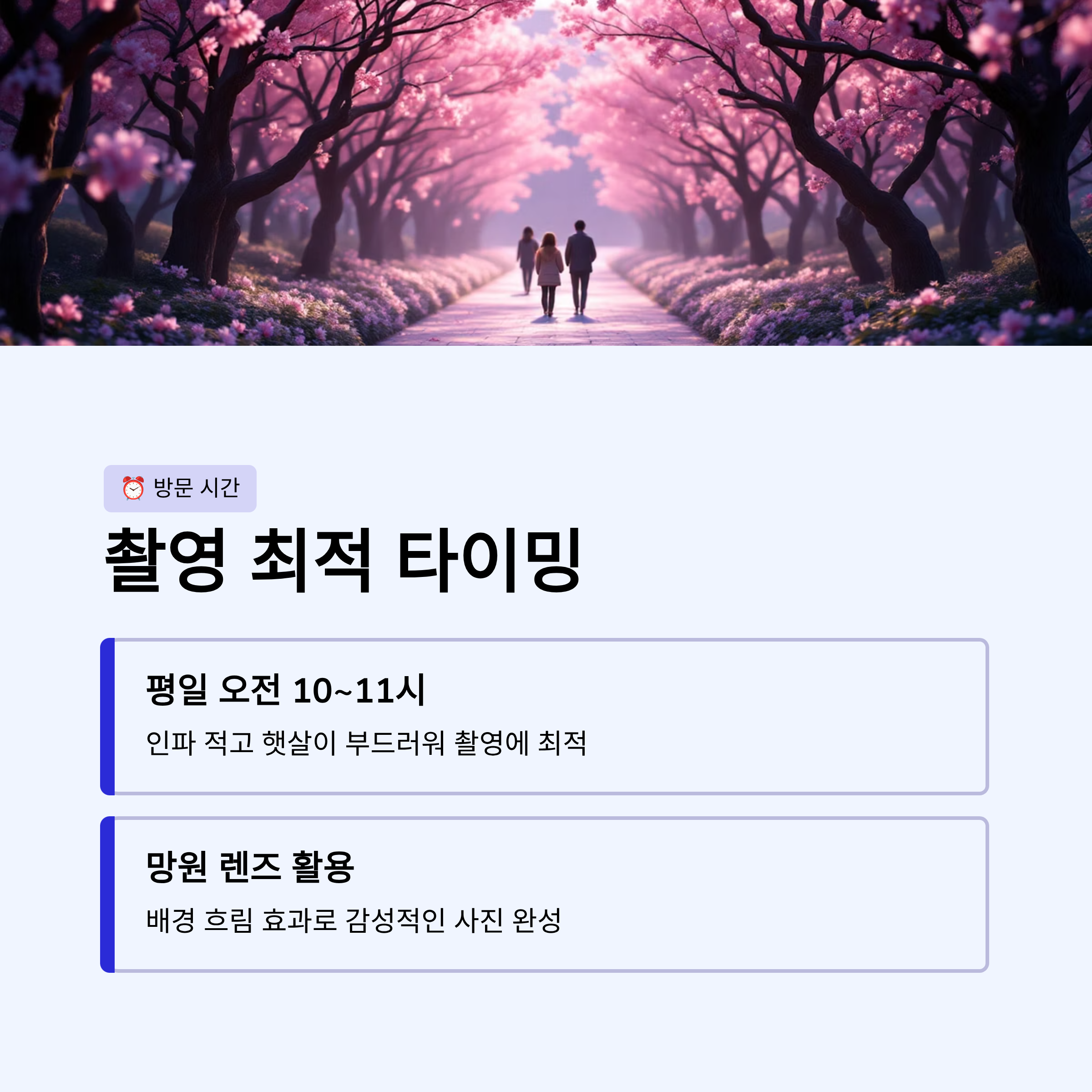 - 인파가 적고 햇살이 부드러워 촬영에 최적