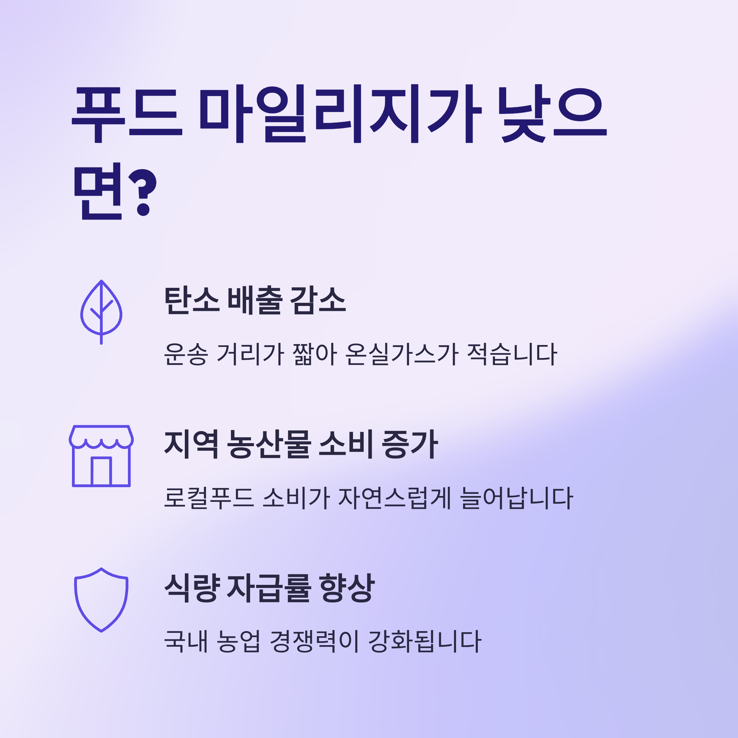 최근 정부와 지자체에서는 로컬푸드 직거래 장터 확대, 지역 농산물 우선 공급 정책 등을 통해 푸드 마일리지를 낮추는 정책을 추진하고 있습니다.