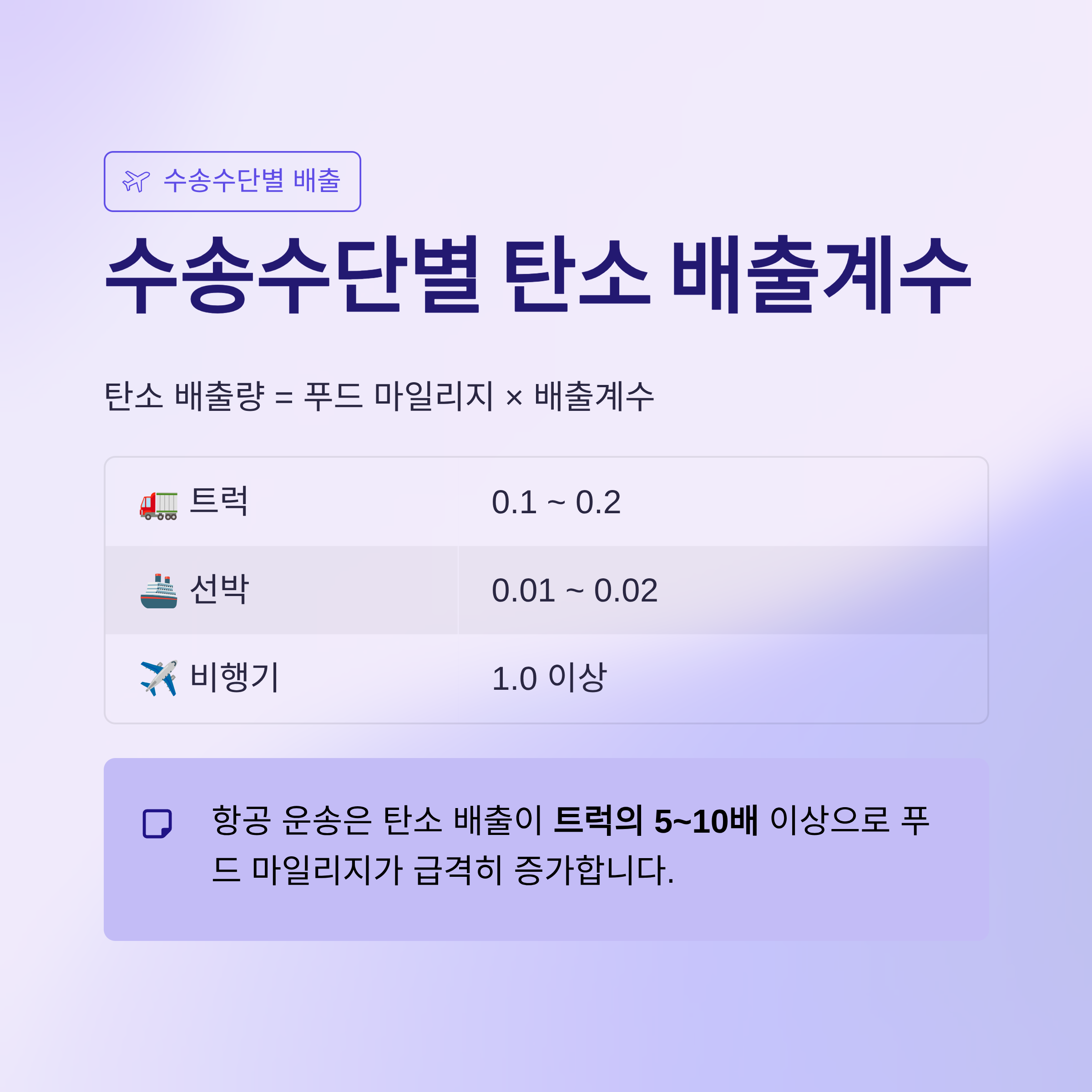 | 수송 수단 | 배출계수 (kg CO₂/t·km) |