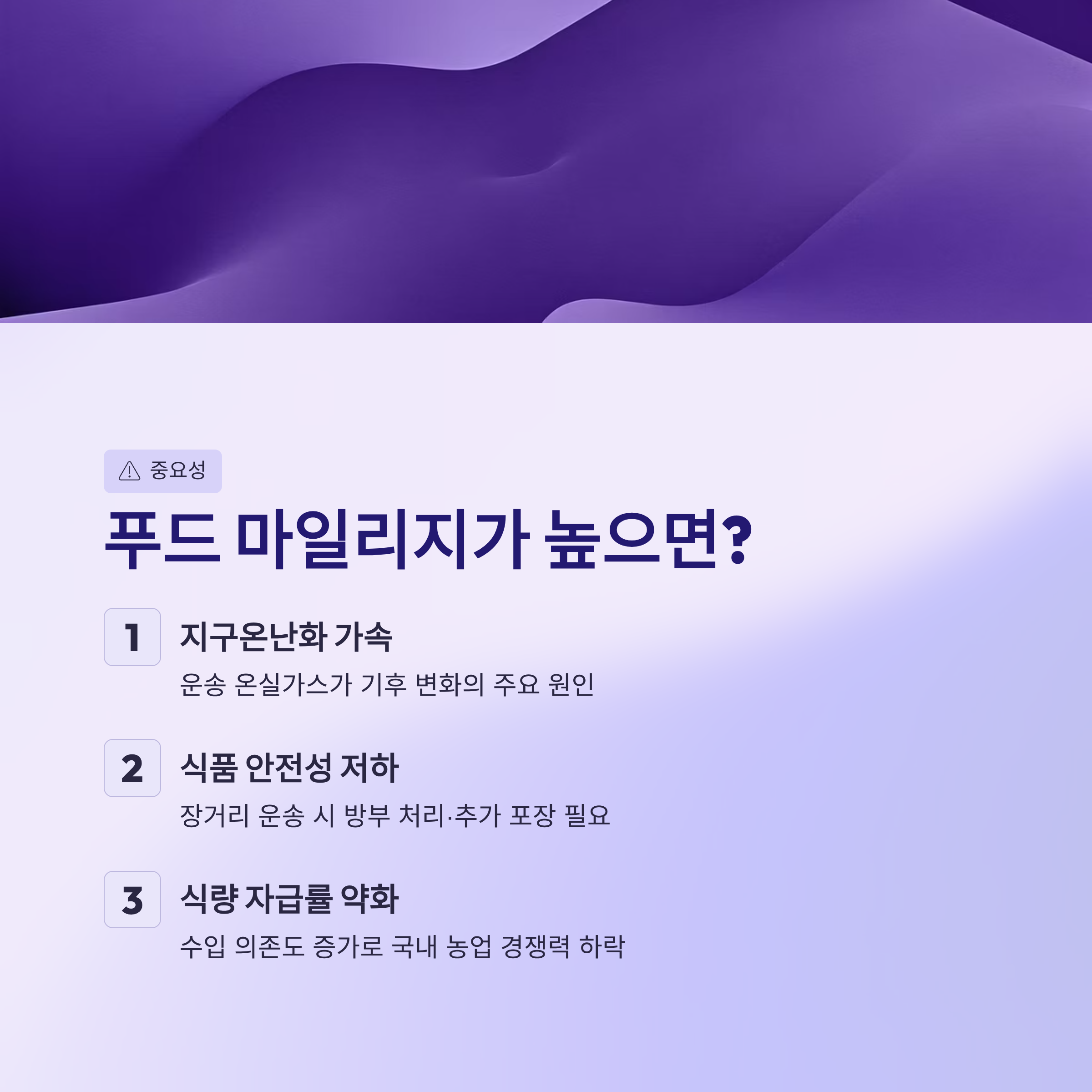 푸드 마일리지가 높다는 것은 단순히 "멀리서 온 음식"이라는 의미가 아닙니다.
