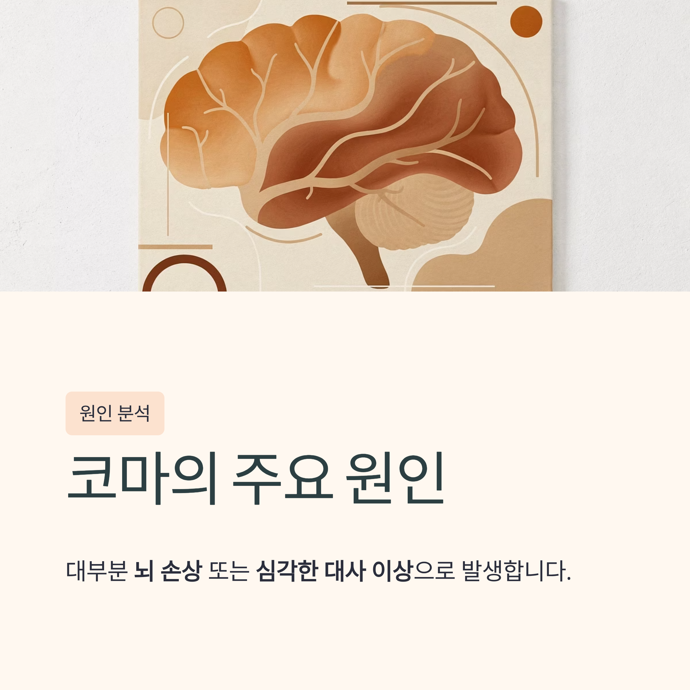 코마는 대부분 뇌 손상 또는 심각한 대사 이상으로 발생합니다.