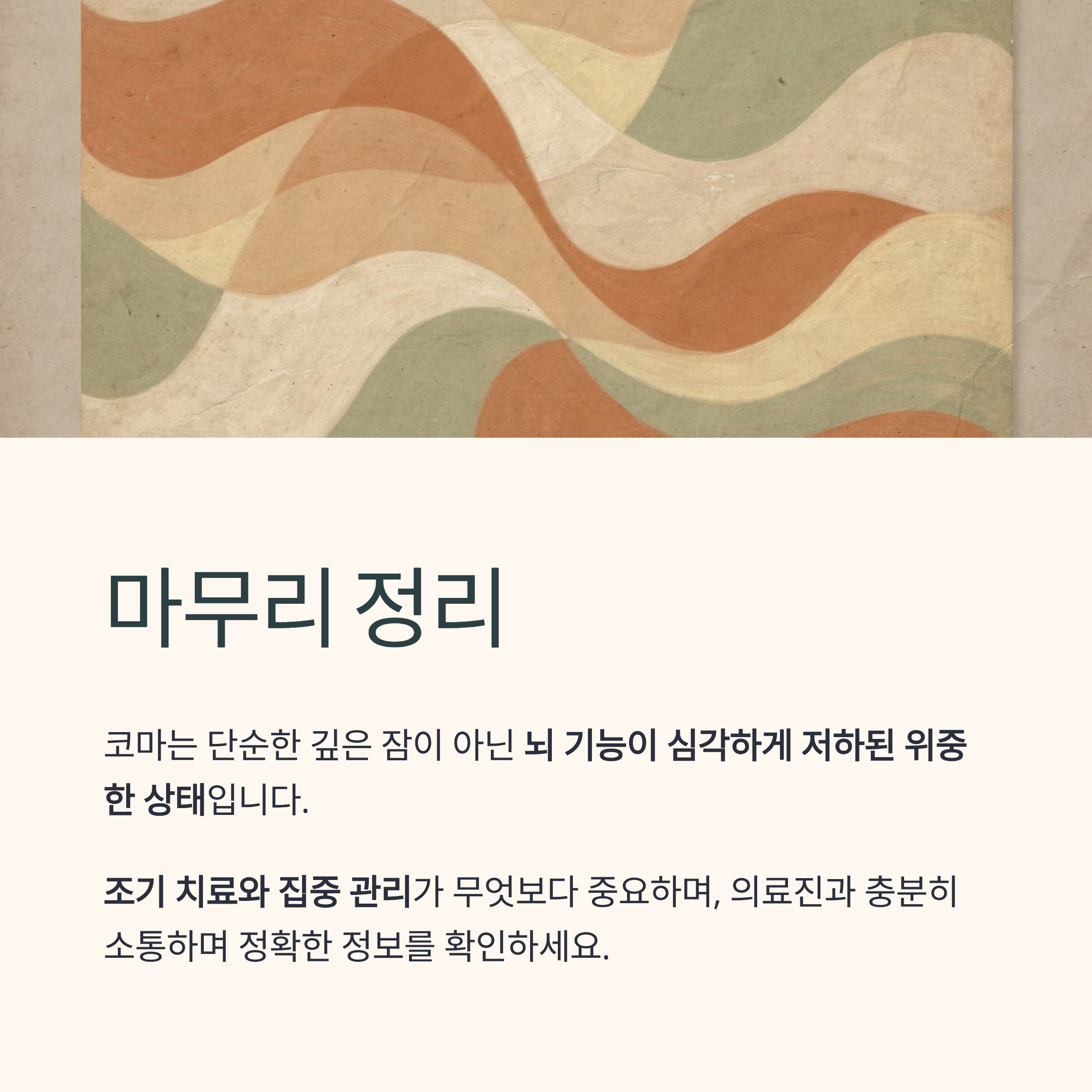 코마 상태는 단순한 깊은 잠이 아니라 뇌 기능이 심각하게 저하된 위중한 상태입니다.
