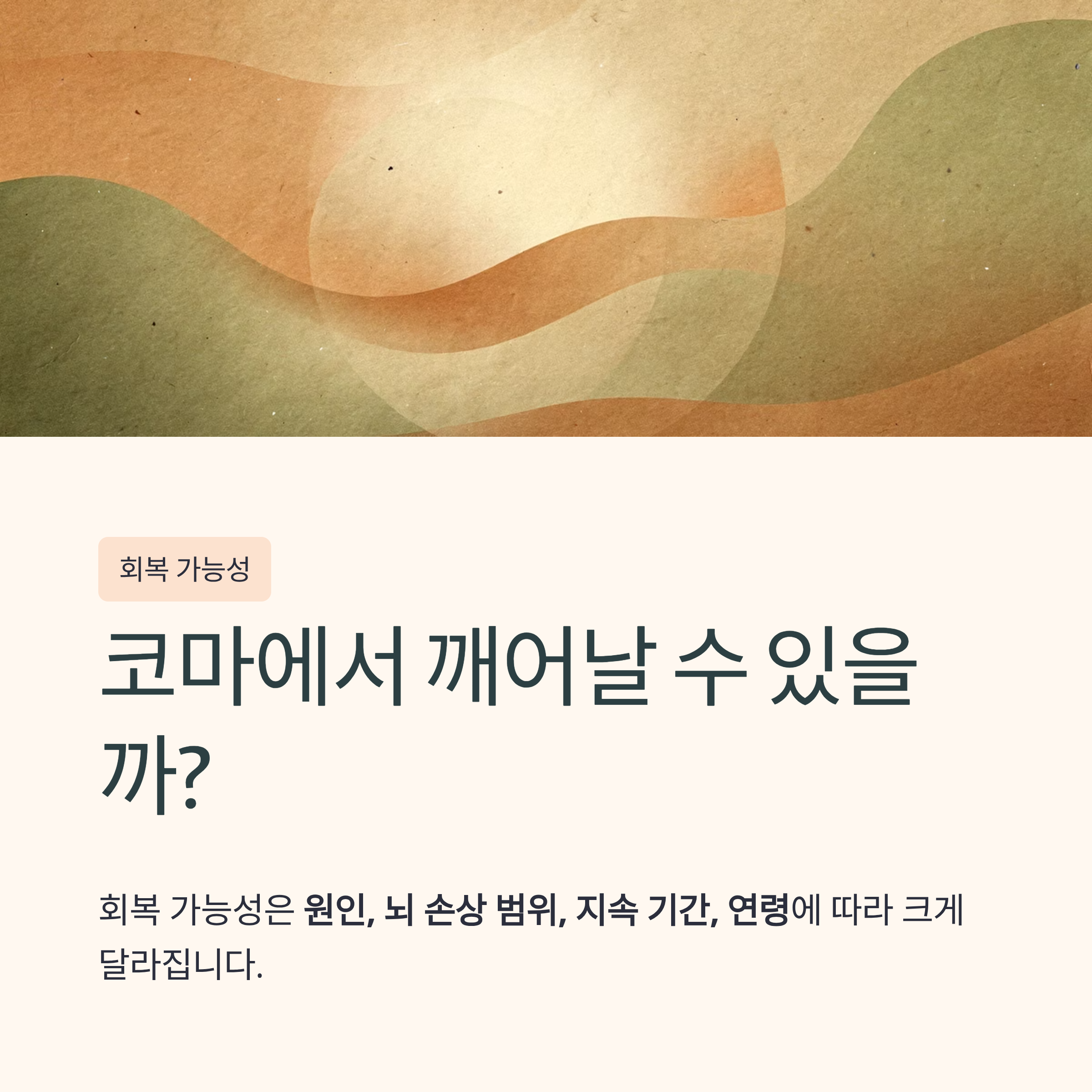 원인, 뇌 손상 정도, 지속 기간에 따라 회복 가능성은 크게 달라지며, 조기 치료와 집중 관리가 무엇보다 중요합니다.
