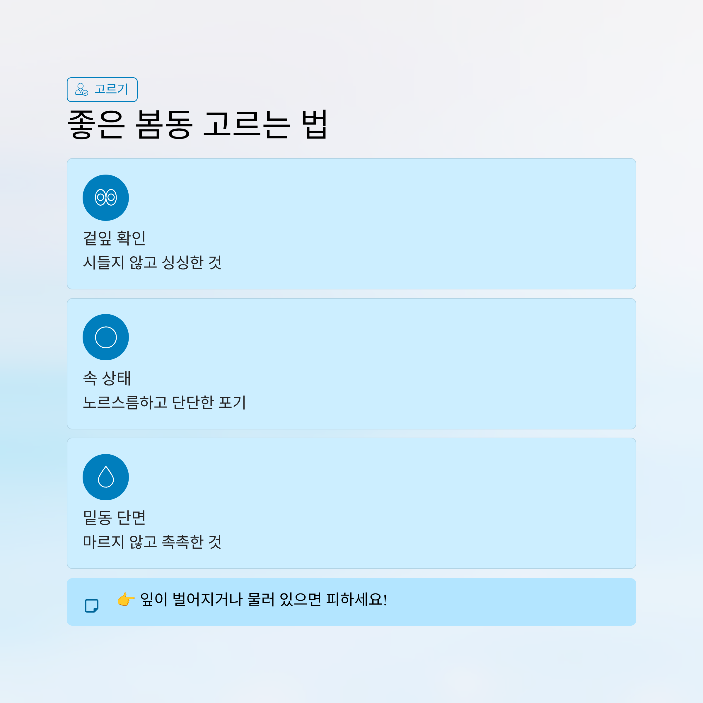 👉 잎이 지나치게 벌어지거나 물러 있으면 피하세요.