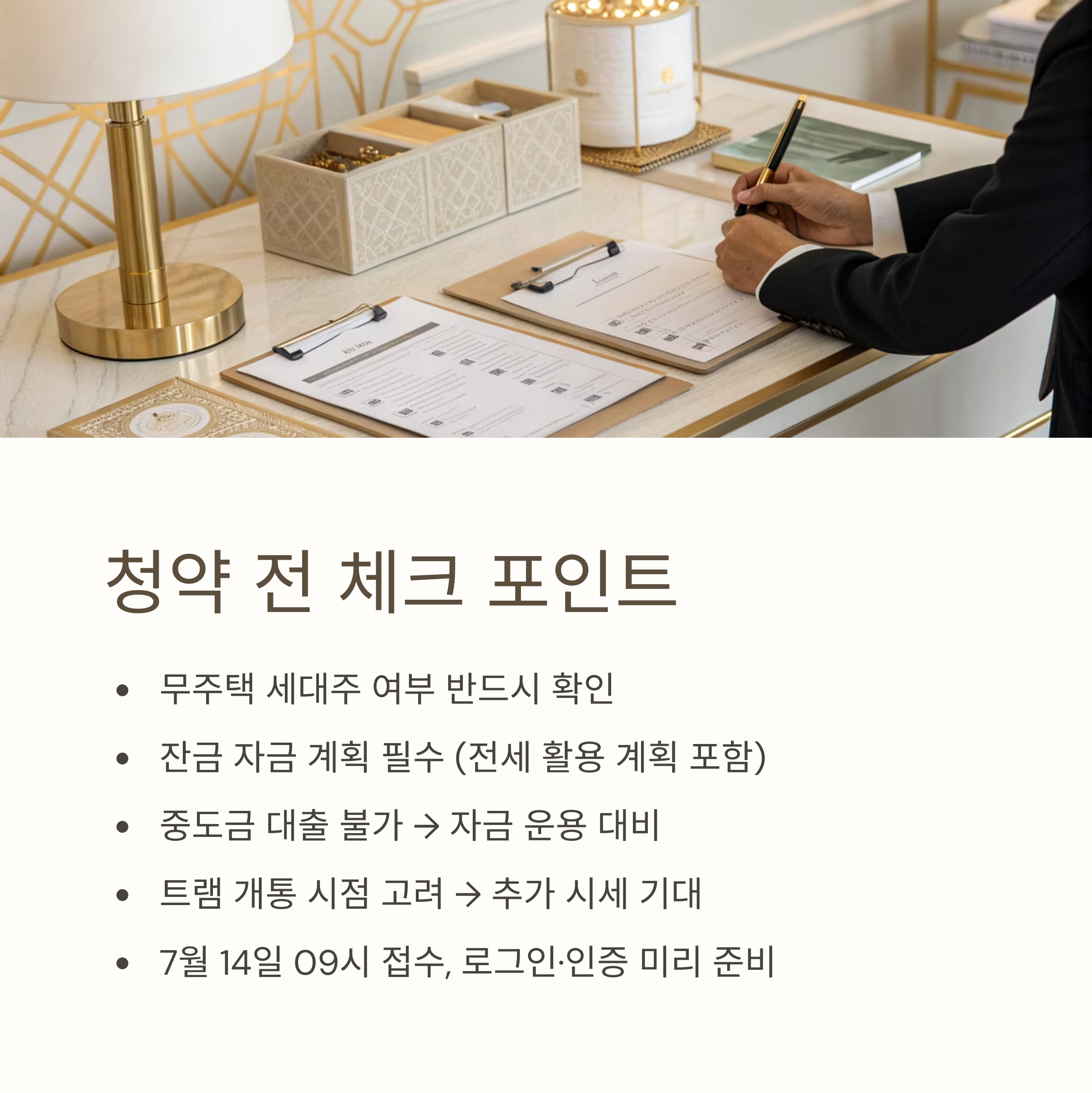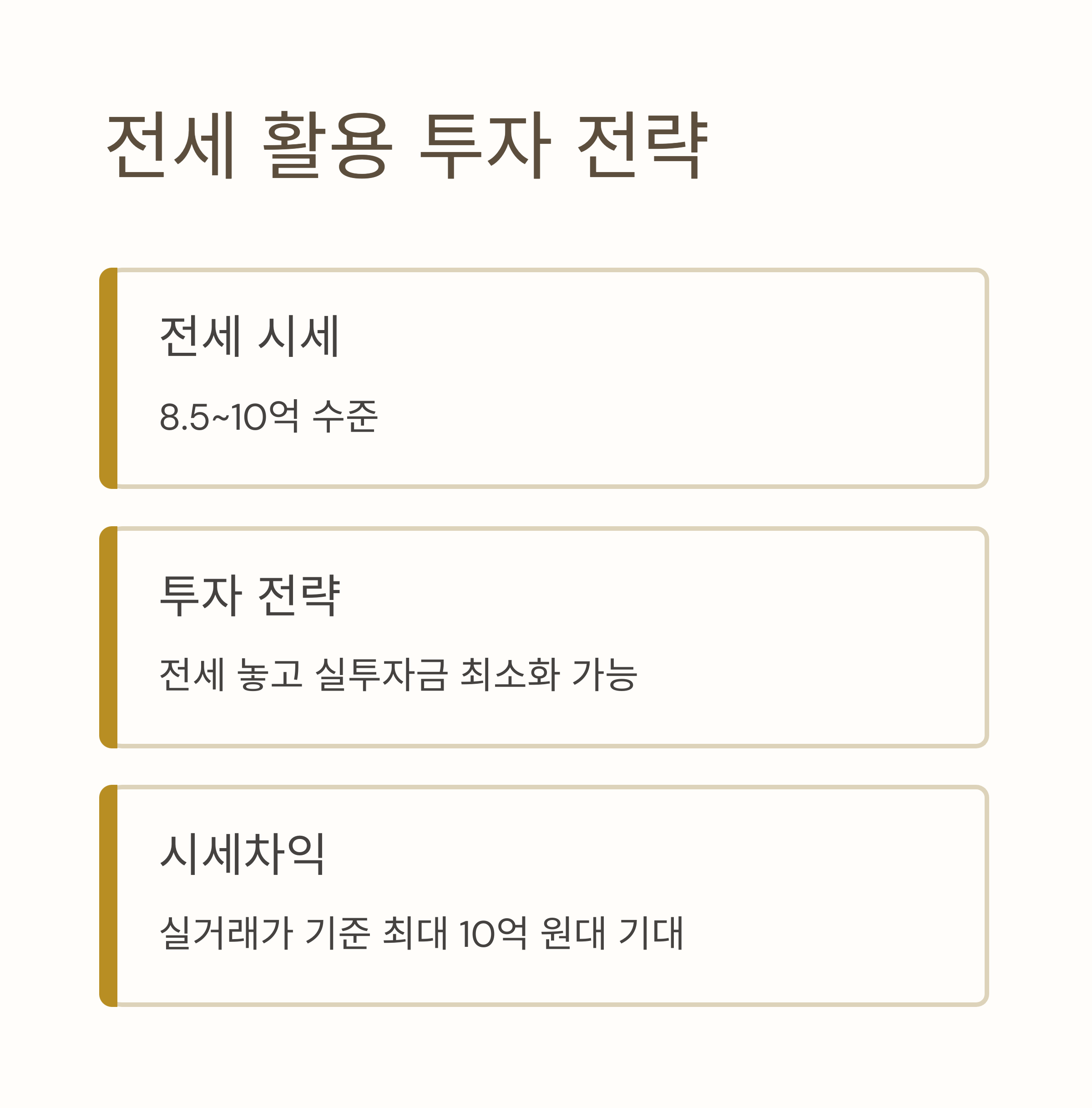 - 잔금 자금 계획 필수 → 전세 활용 계획 포함