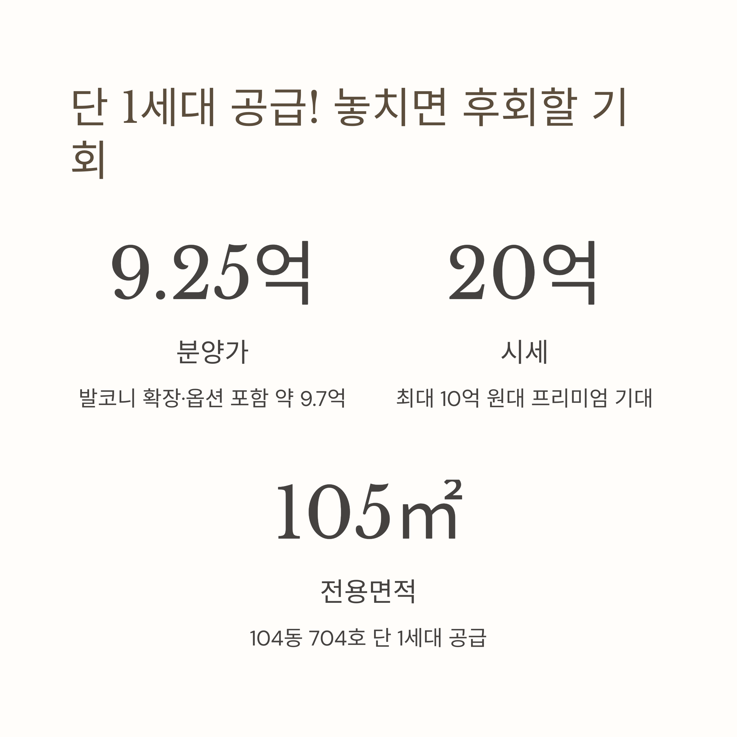 - 공급 세대: 전용 105㎡ (104동 704호) 단 1세대