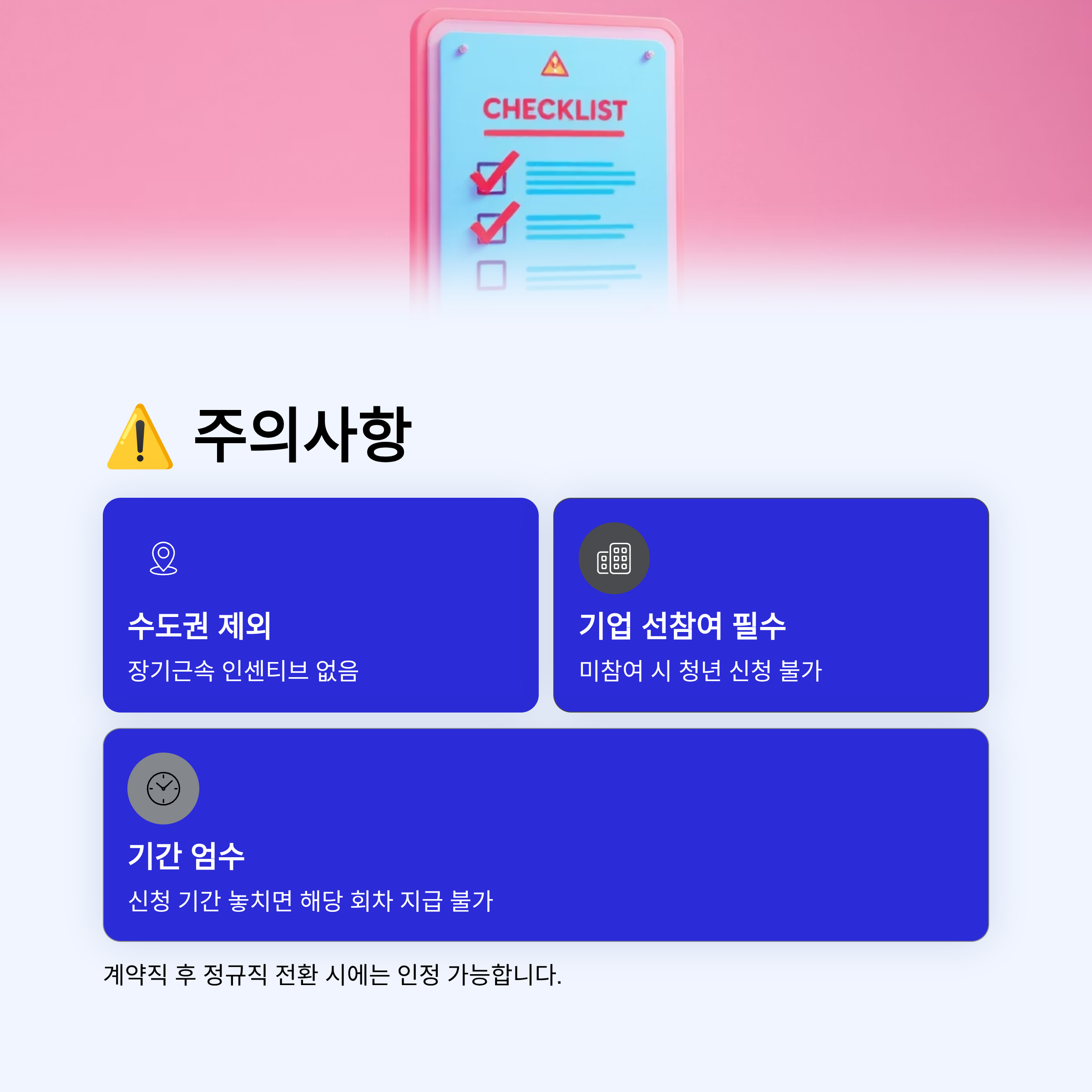 주의: 수도권 취업자는 장기근속 인센티브 대상이 아닙니다.