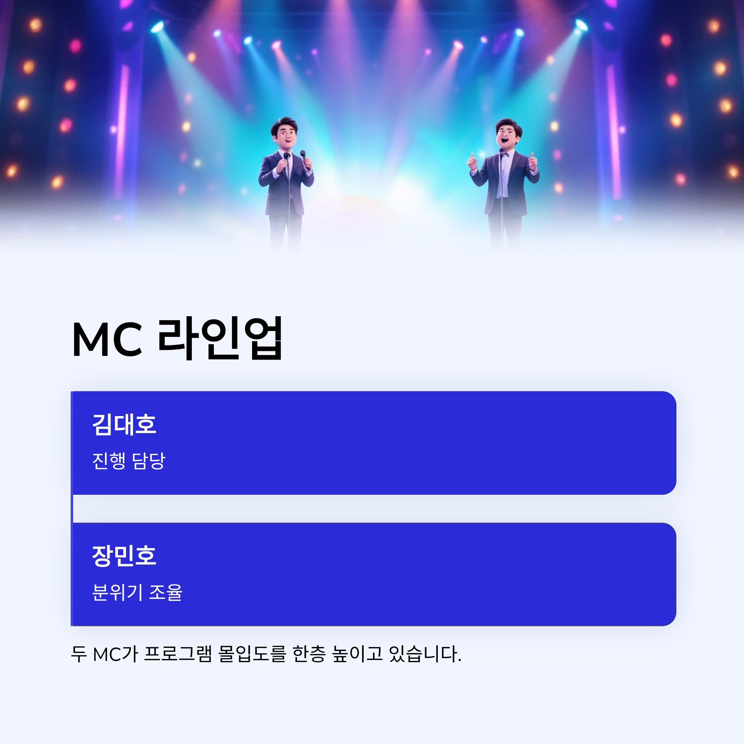 진행과 분위기 조율을 맡아 프로그램 몰입도를 높이고 있습니다.