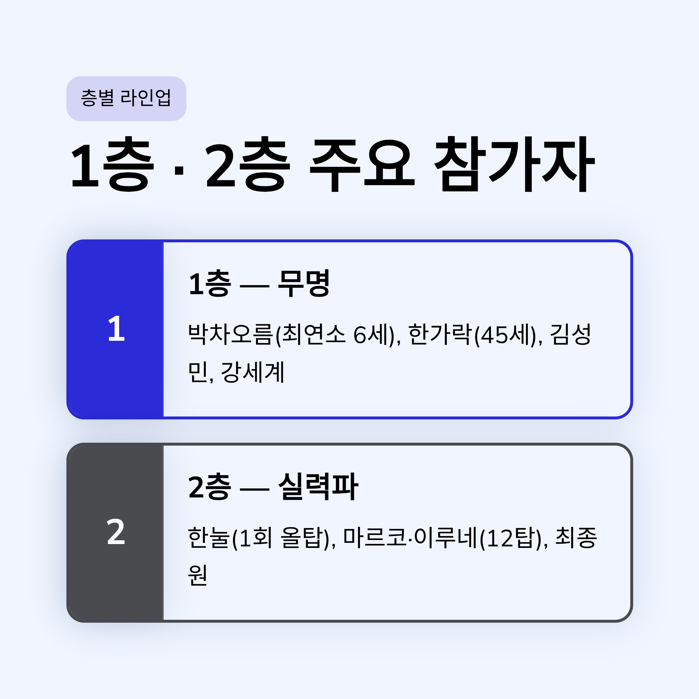 층별 주요 참가자 라인업