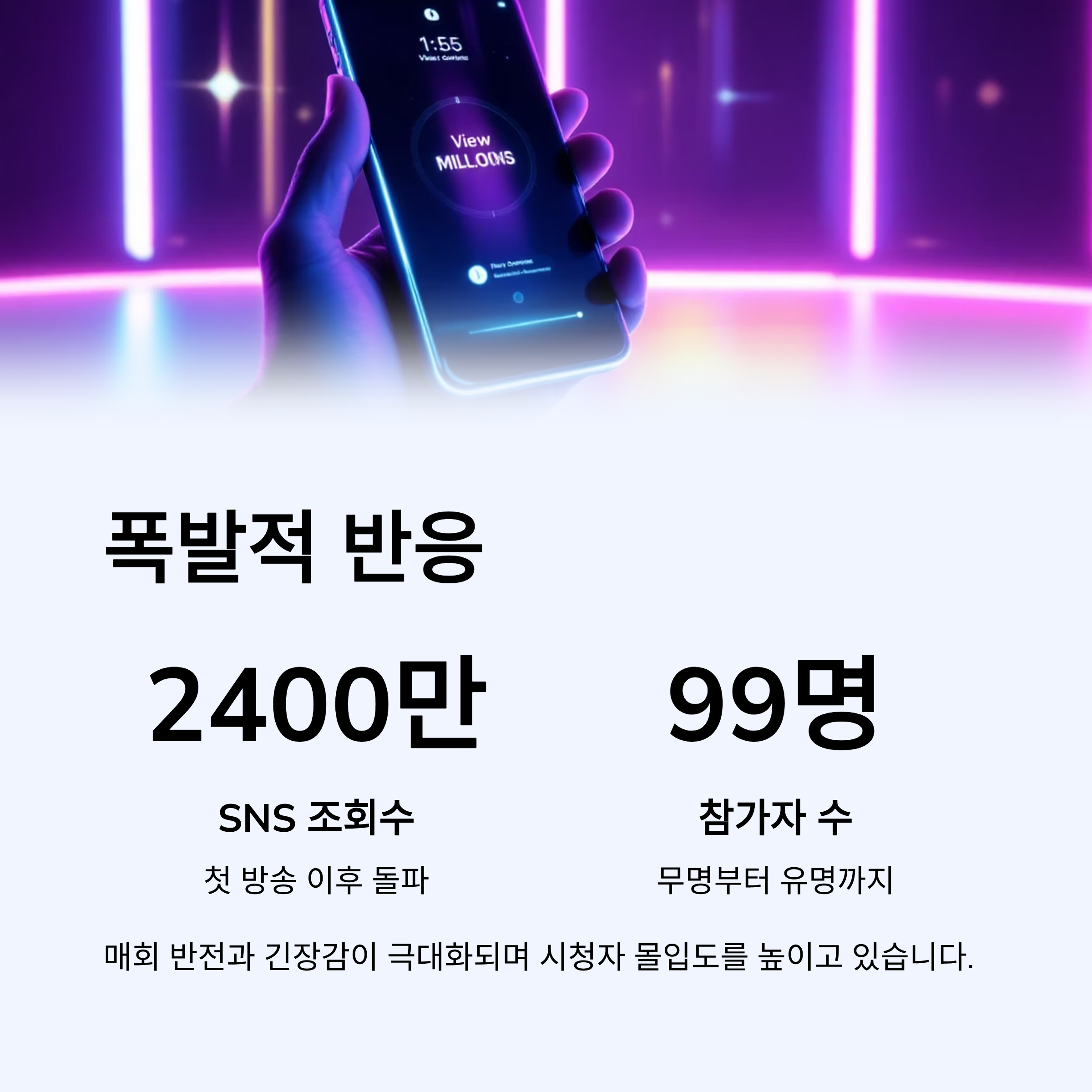 첫 방송 이후 SNS 조회수 2400만 회를 돌파하며 폭발적인 관심을 받았습니다.