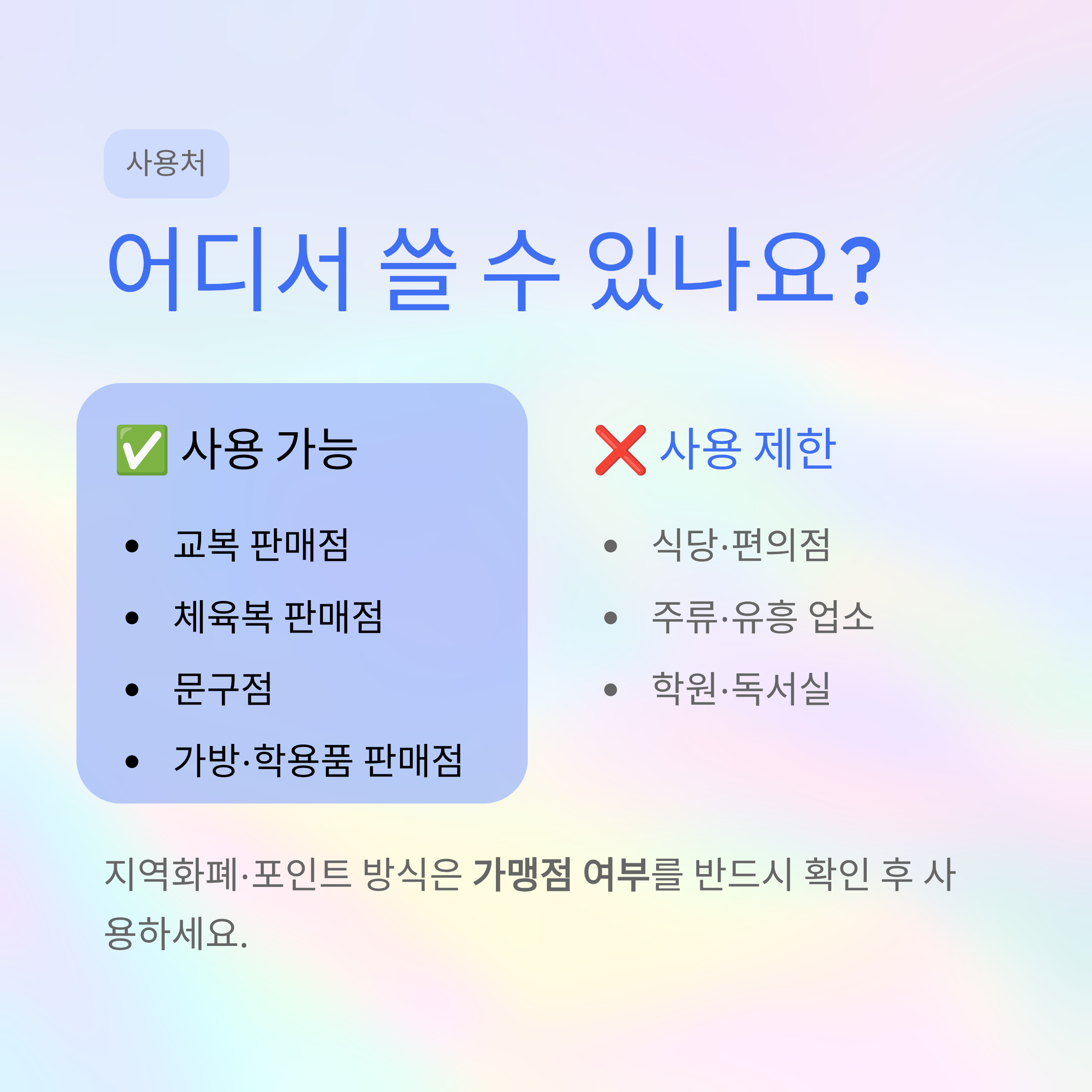 - 사용처: 교복, 학용품 등 교육 관련 비용