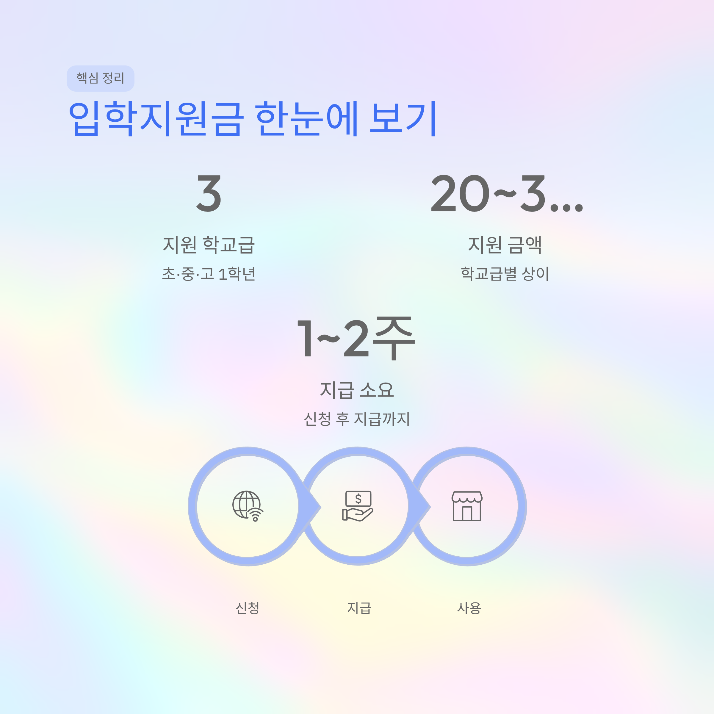 이번 글에서는 입학지원금 대상, 지원 금액, 신청 방법, 사용처까지 쉽게 정리했습니다.