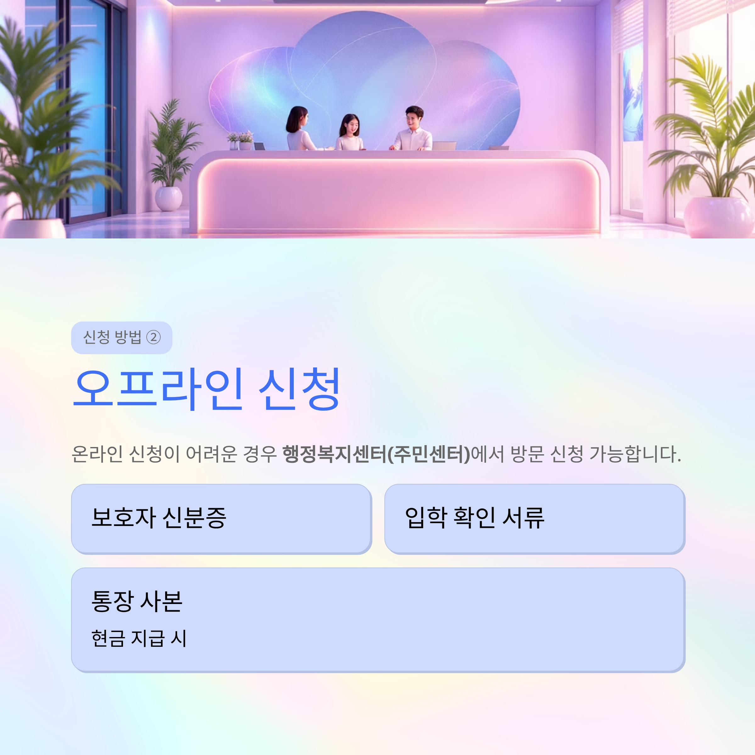 입학지원금은 자동 지급이 아니라 보호자가 직접 신청해야 하는 경우가 많습니다.