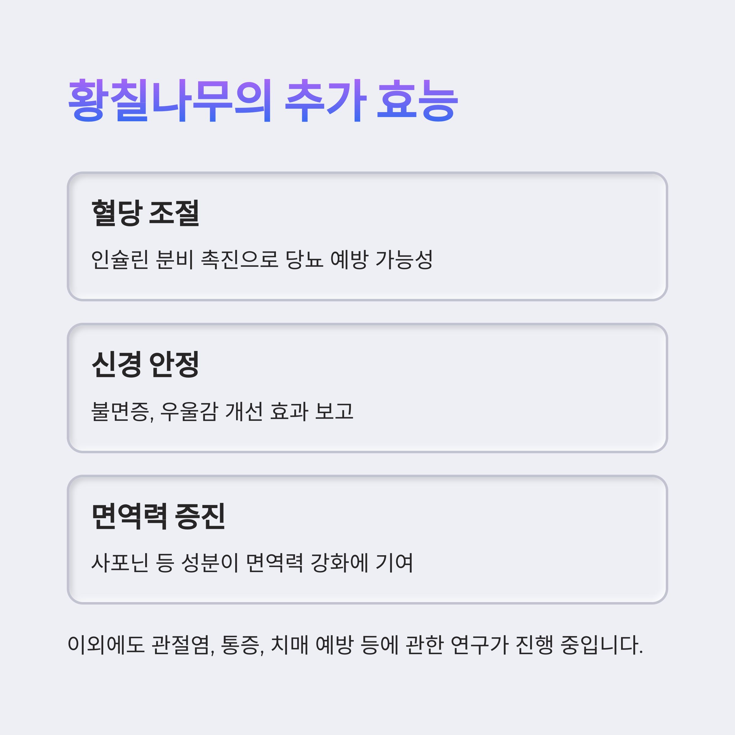 | 혈당 조절 | 인슐린 분비 촉진으로 당뇨 예방 가능성 |