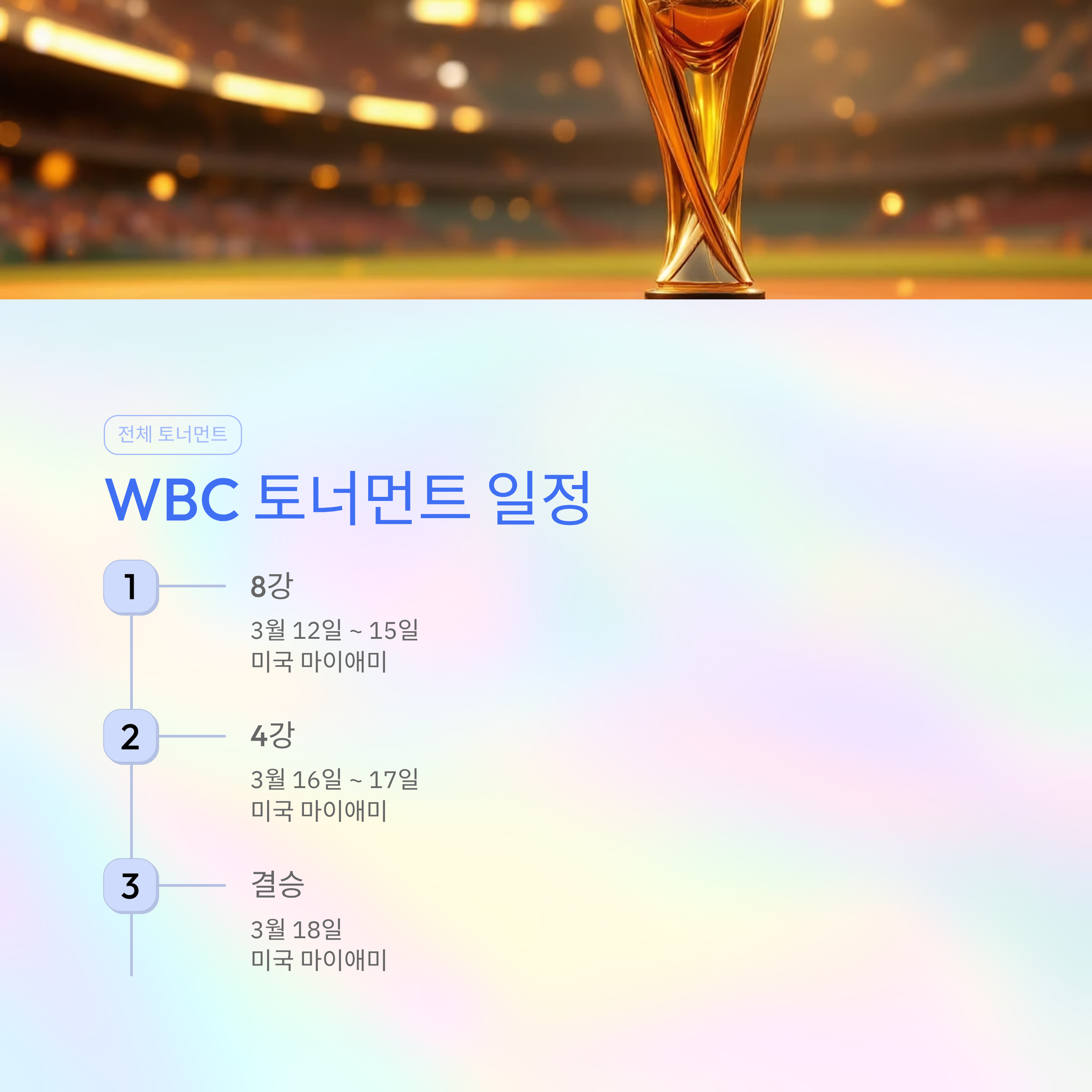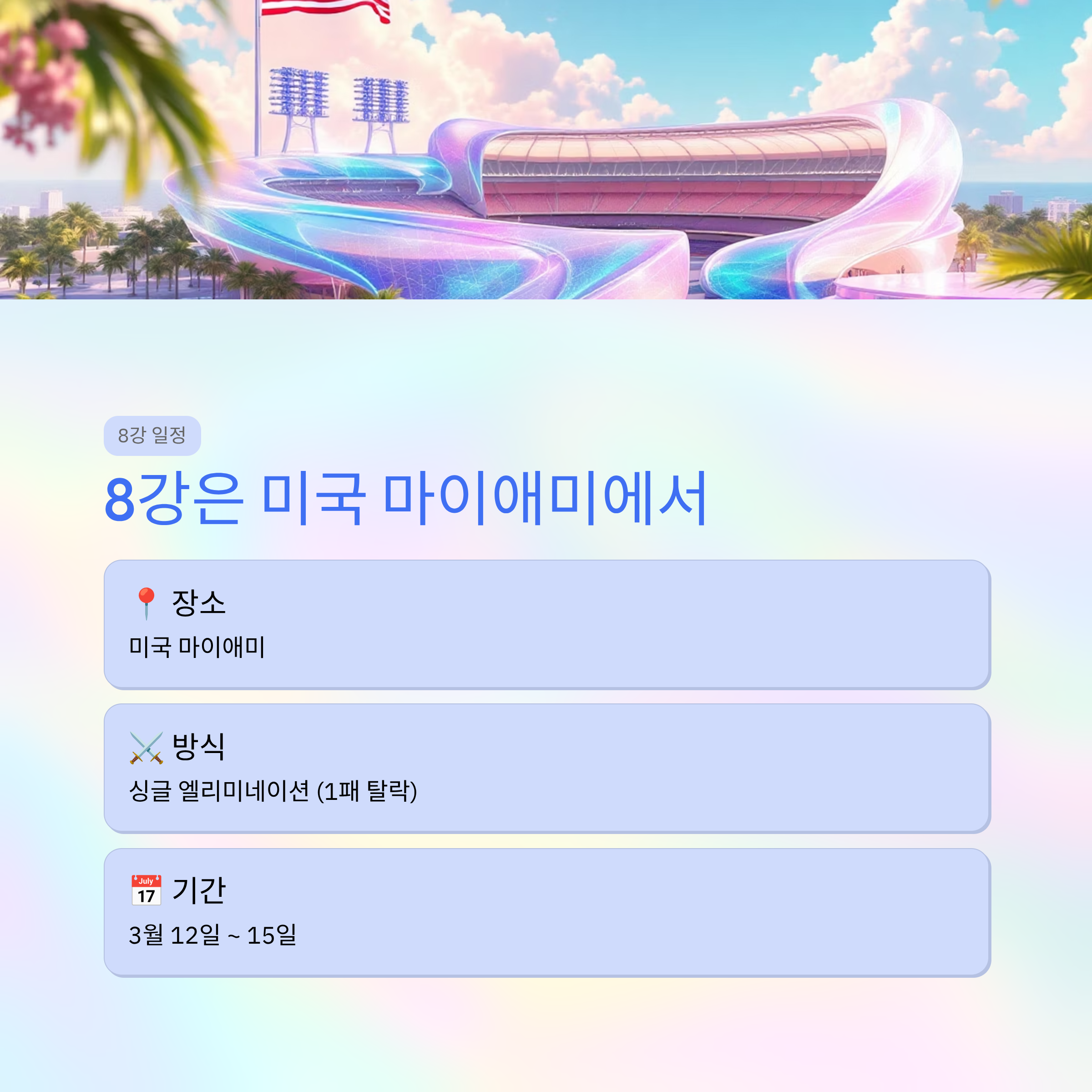 2026 월드베이스볼클래식 8강은 미국 마이애미에서 진행됩니다.