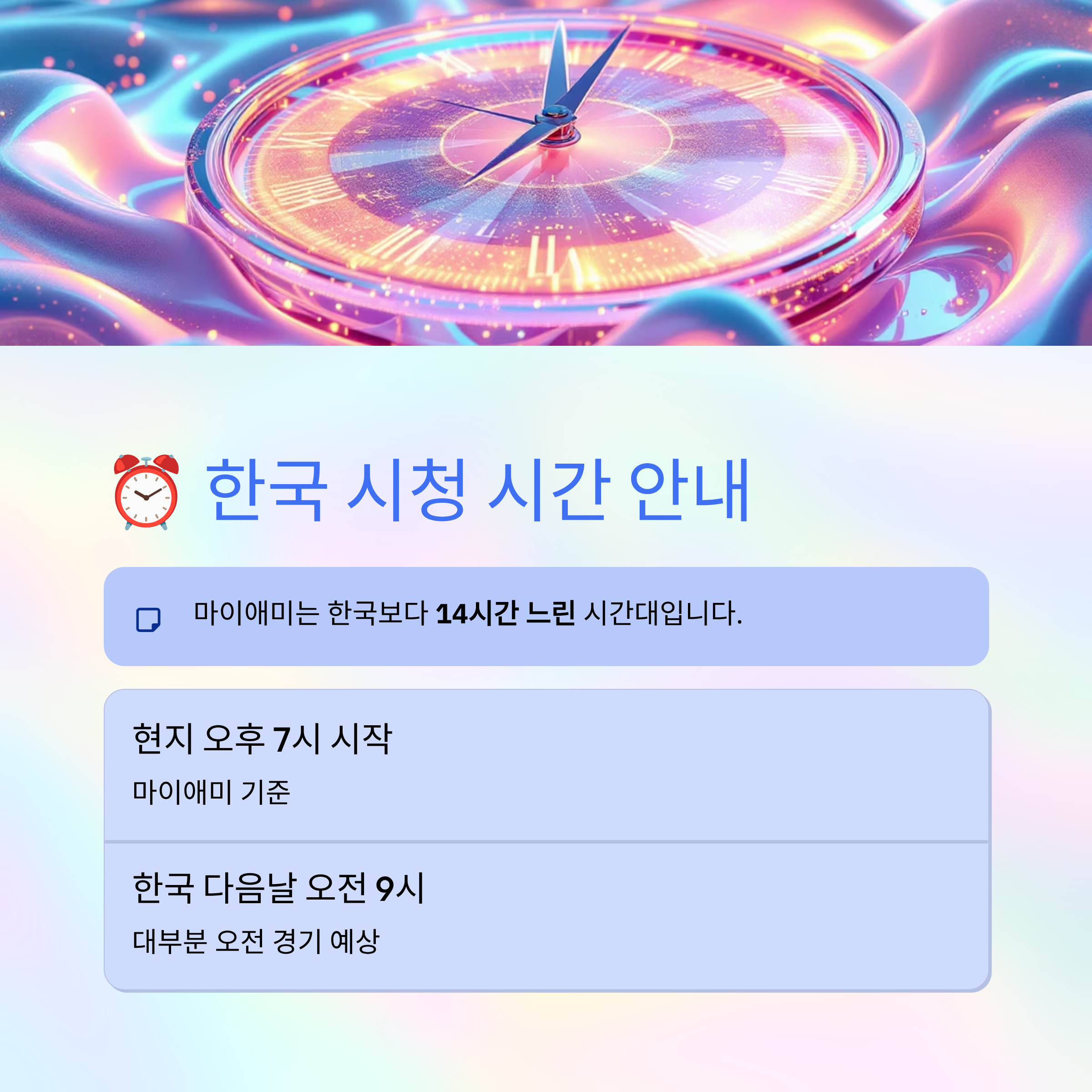마이애미는 한국보다 14시간 느린 시간대입니다.