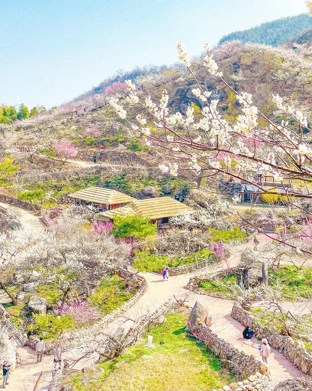 광양 매화마을은 한국에서 가장 유명한 매화 명소입니다.