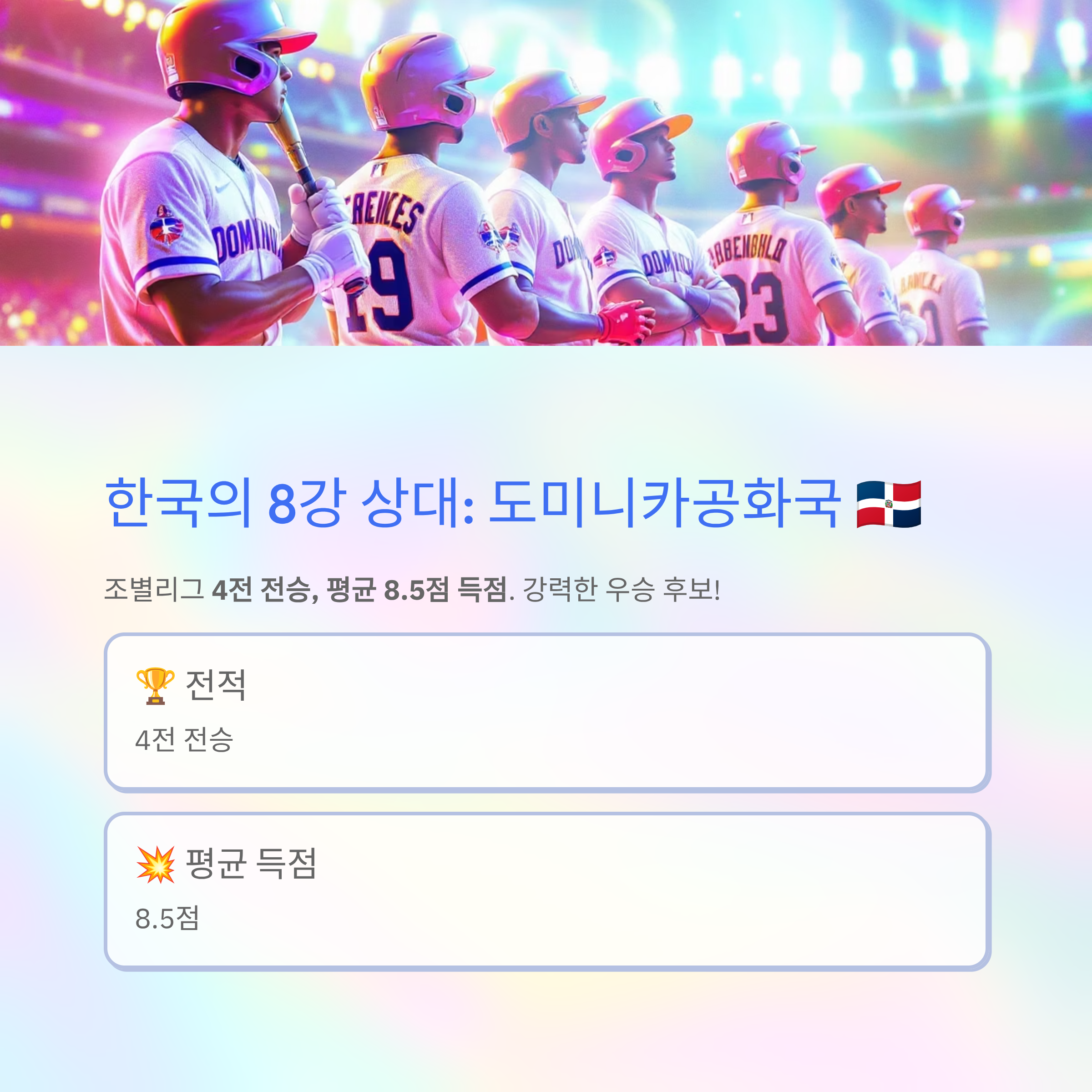 특히 한국 대표팀이 강력한 우승 후보인 도미니카공화국과 맞붙을 가능성이 높아 이번 8강전은 대회 최고의 빅매치 중 하나가 될 것으로 기대되고 있습니다.