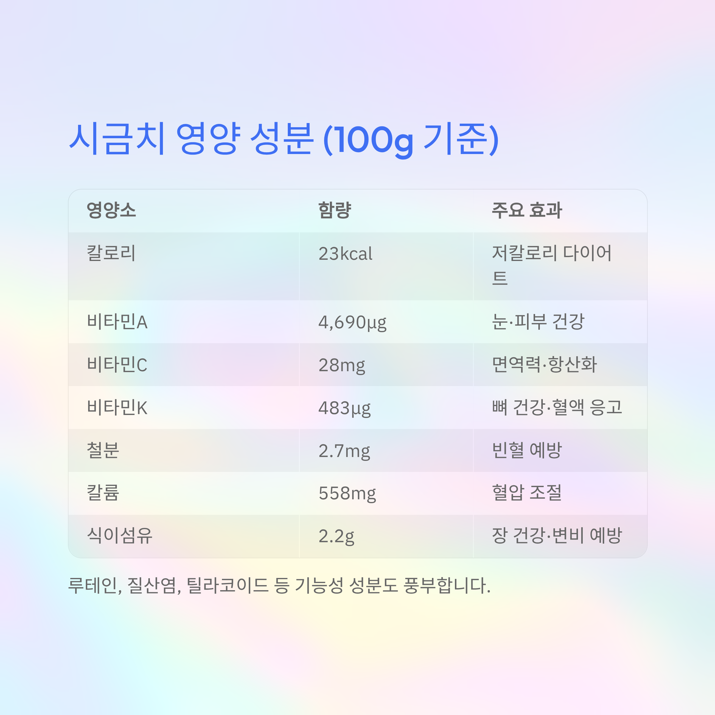 시금치 영양 성분 (100g 기준)
