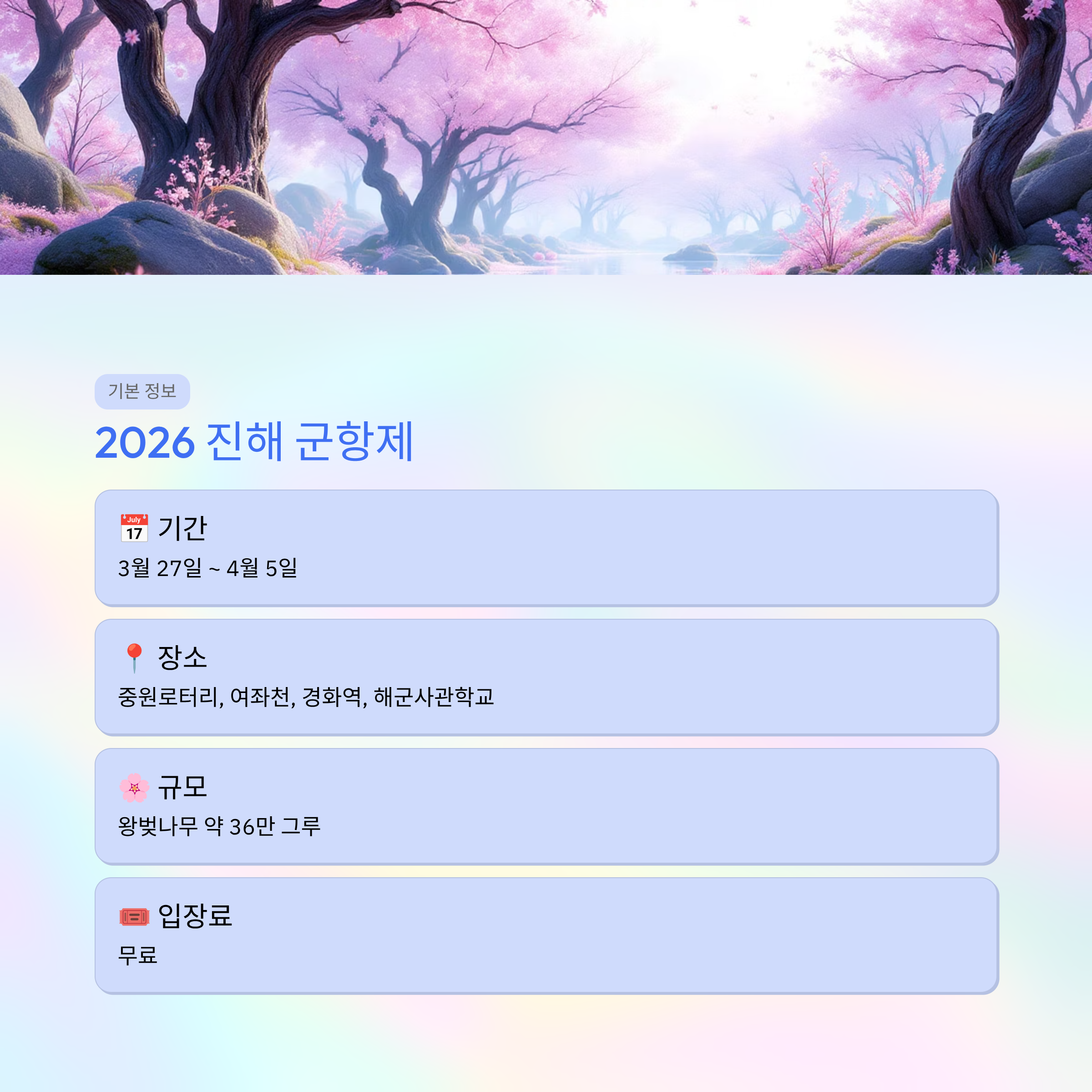 - 축제 기간: 2026년 3월 27일 ~ 4월 5일
