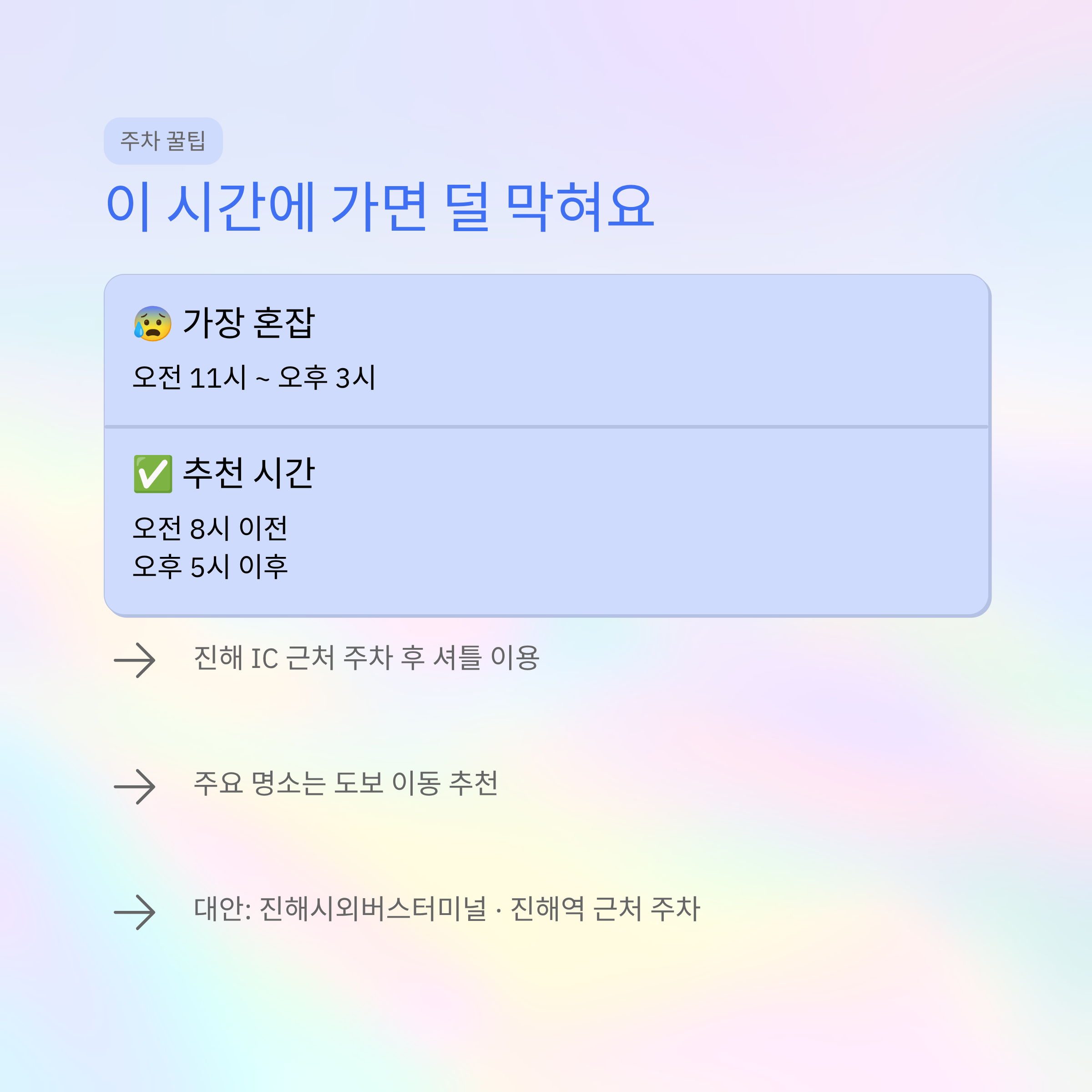 - 평일 오전 방문이 가장 쾌적