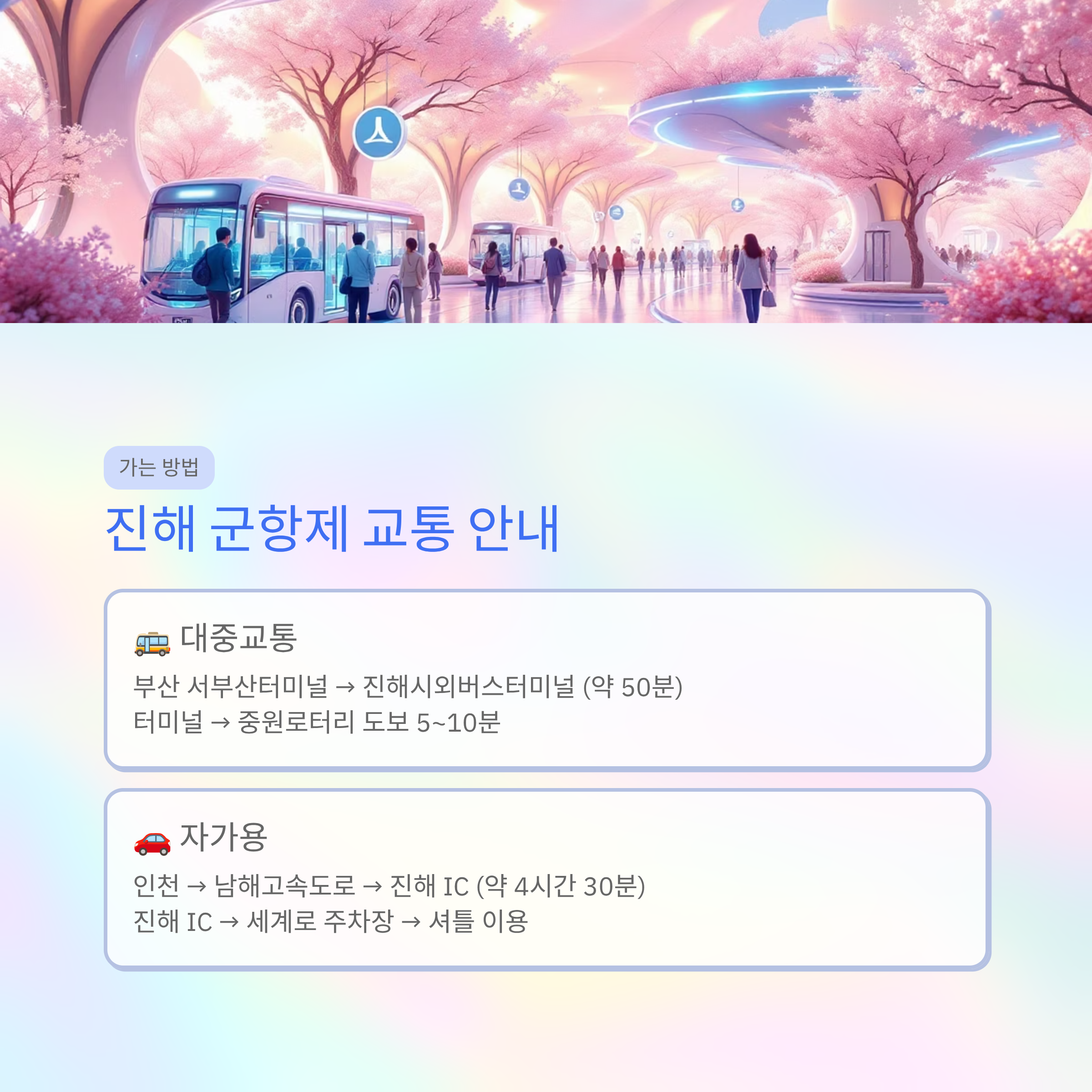 진해 IC → 세계로 주차장 → 셔틀버스 이용