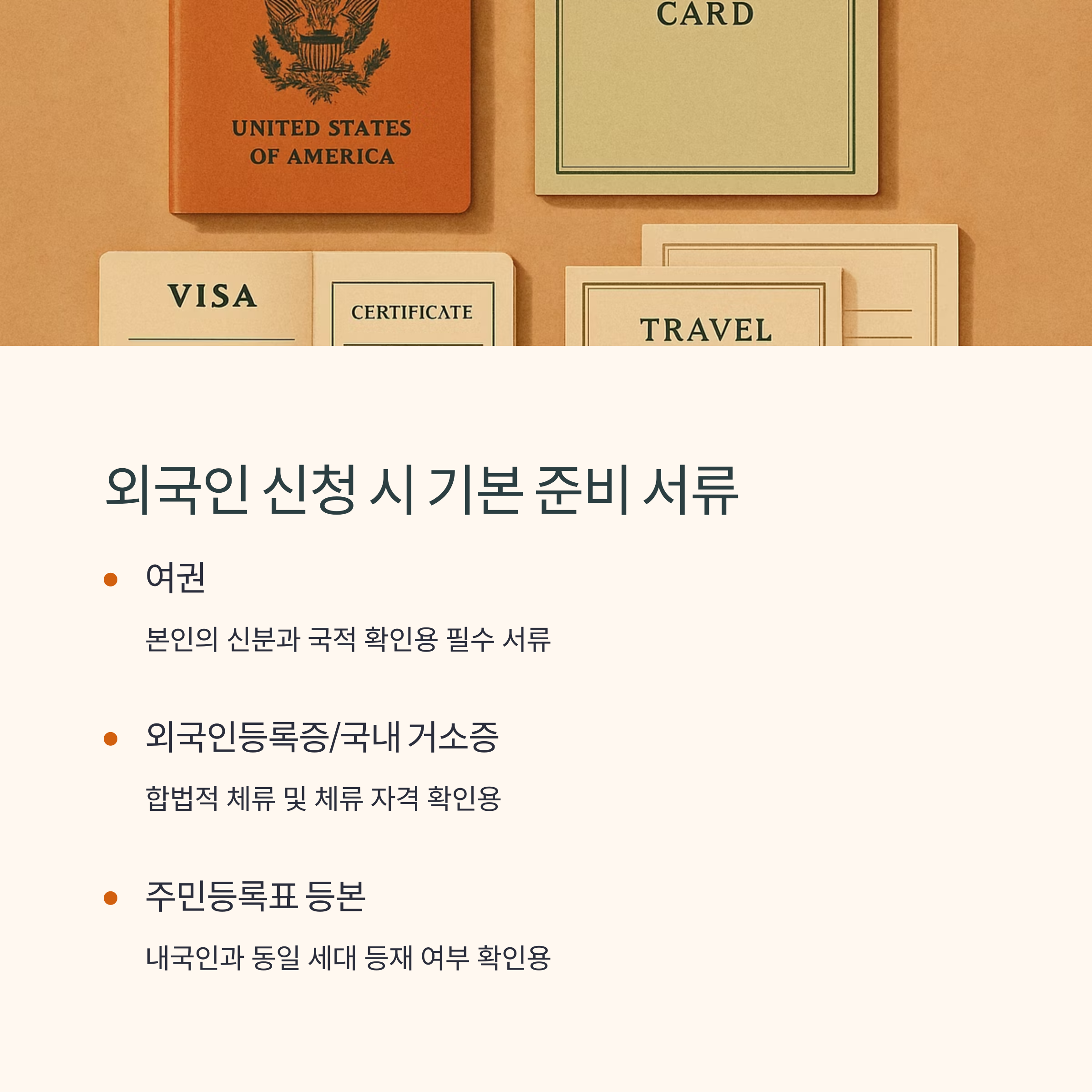 - 본인의 신분과 국적을 확인할 수 있는 필수 서류